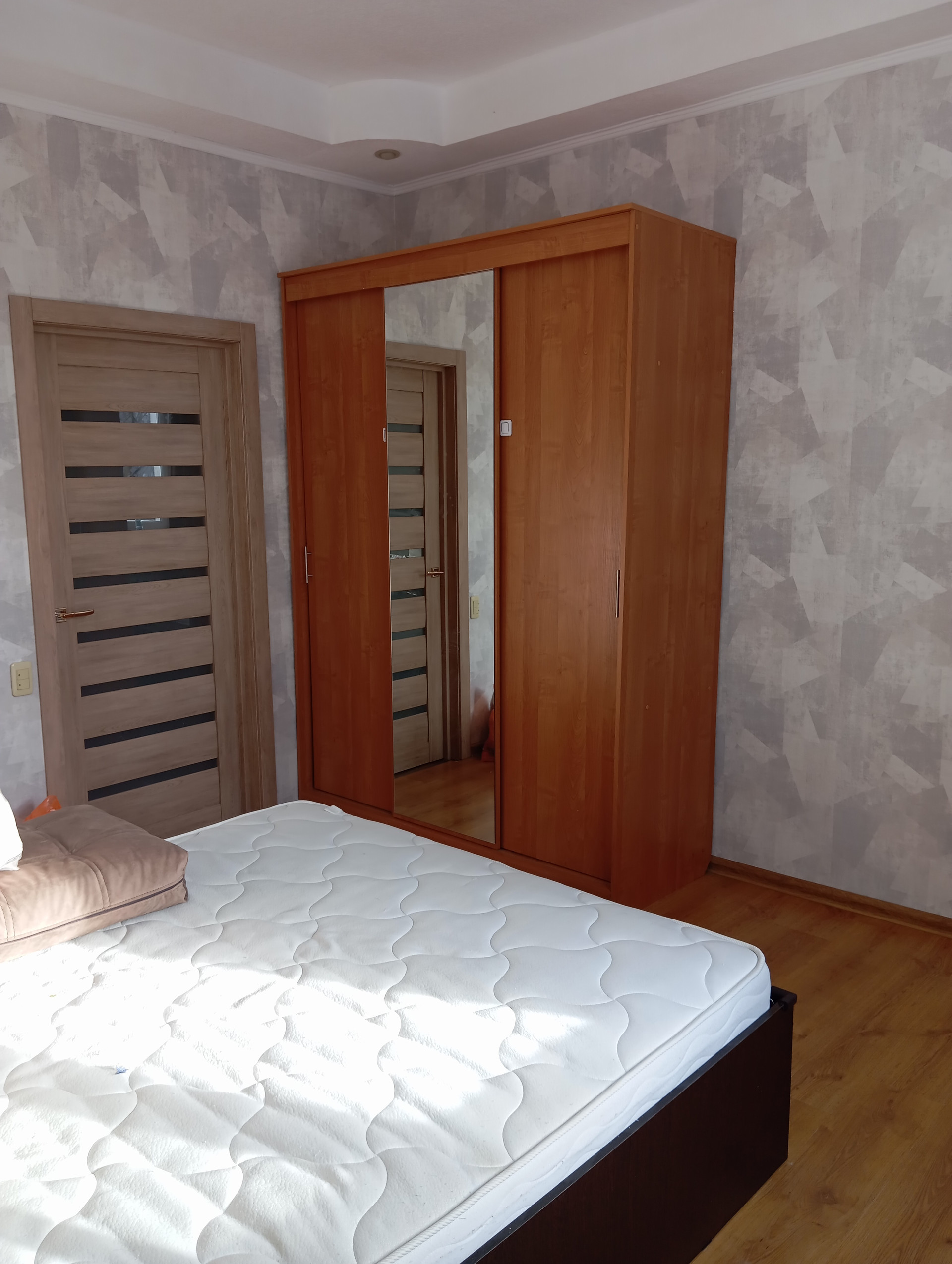 Из мебели останется кухонный гарнитур, два больших шкафа в коридоре и комнате, диван и двуспальная кровать.