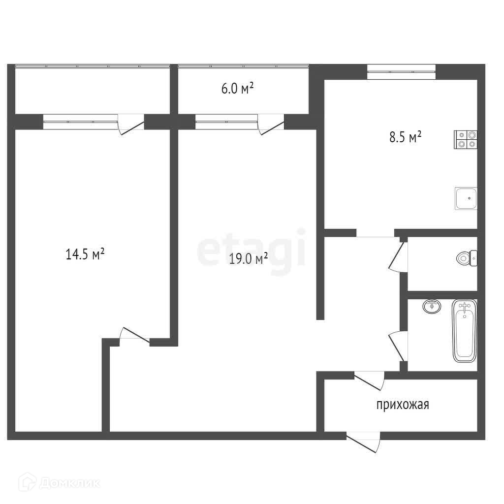 Общая площадь квартиры 51 кв.м., уютная кухня 8,5 кв м удобной квадратной формы, две просторные изолированные комнаты 19 и 14,5 кв. м. Раздельный санузел, большая лоджия 6 кв. м.