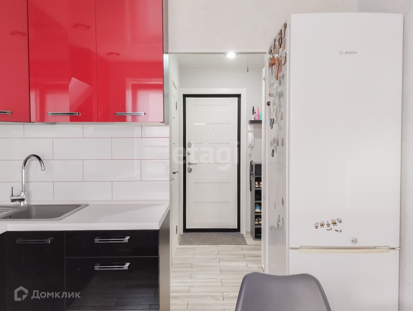 При продаже остаётся кухонный гарнитур со встроенной техникой Bosch, шкаф в прихожей, шкаф купе и стенка в большой комнате, бойлер.
