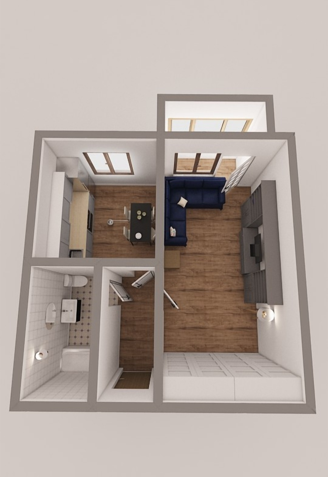 - покрытие пола: ламинат, плитка.