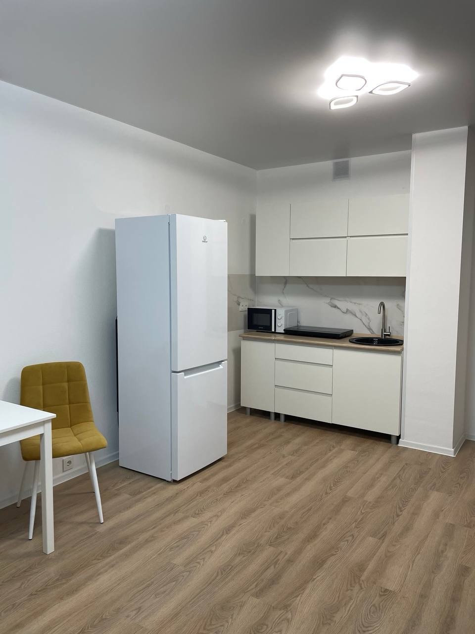 Квартира расположена в светлом, строящемся районе. По плану под окнами будет построен детский сад, много парковок, кофейни, магазины