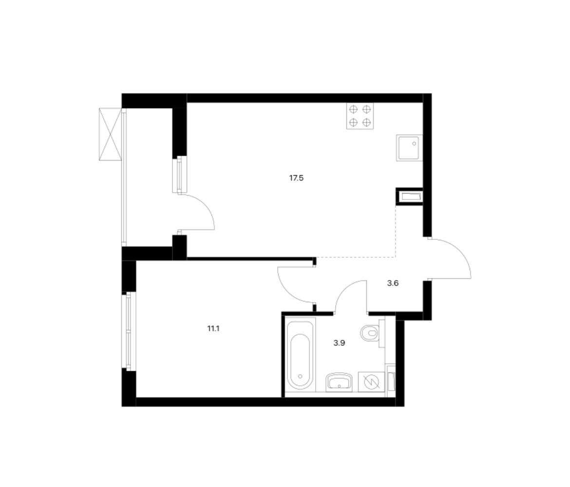 Общая площадь 37.5 м2
