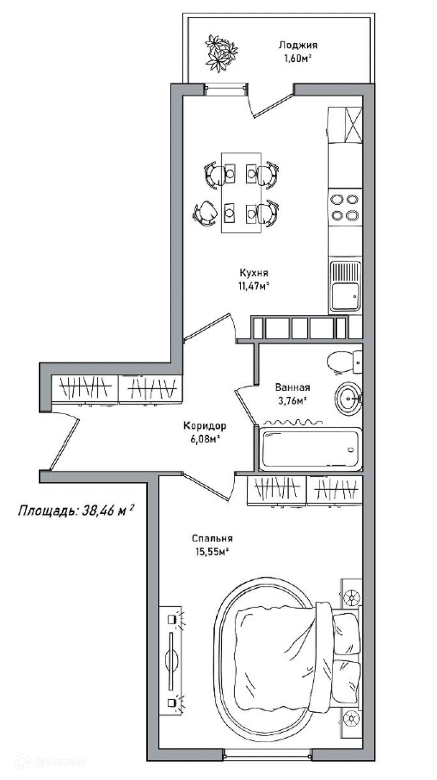 Общая площадь 38.46 м2