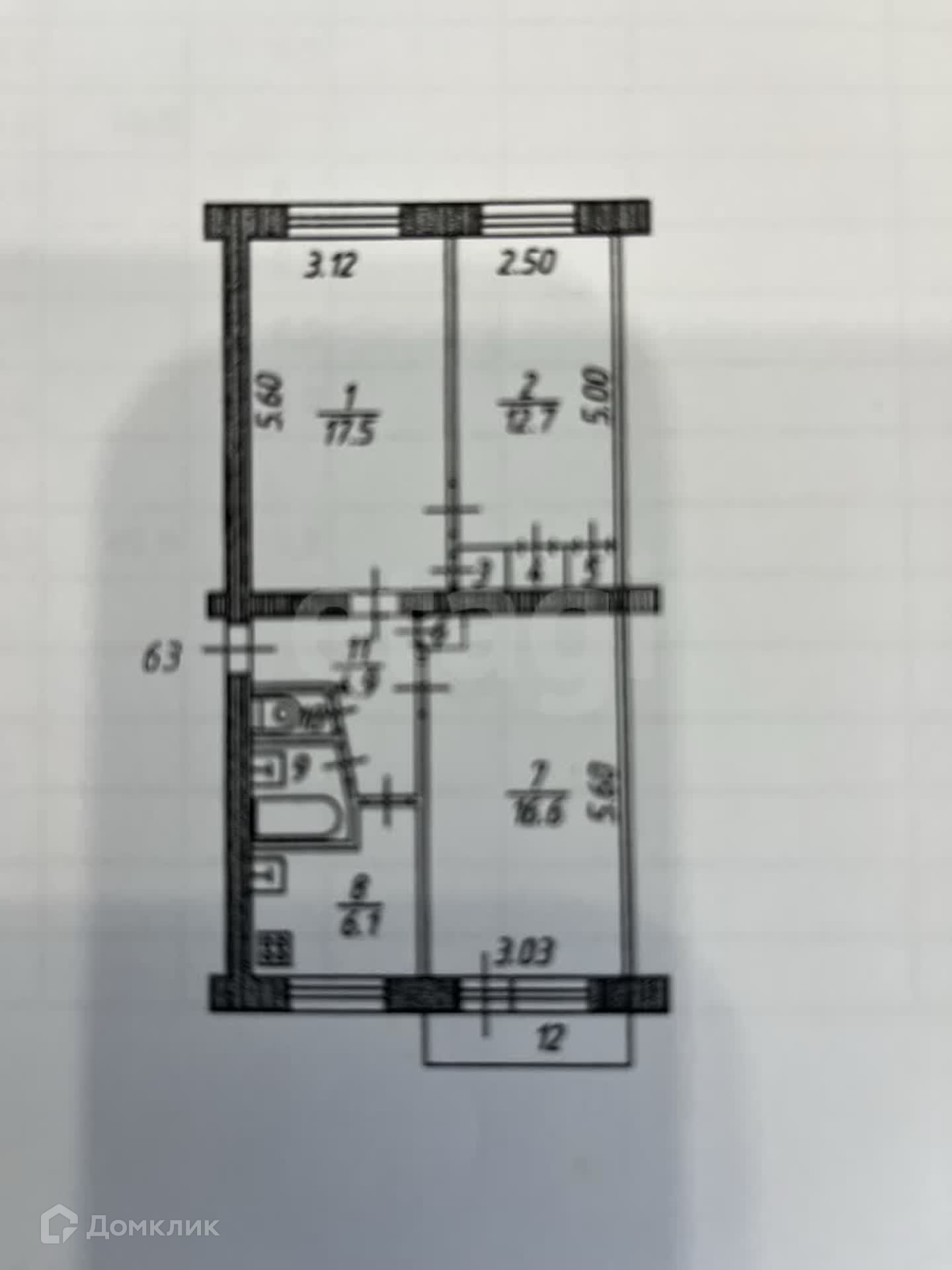 Общая площадь 62.6 м2