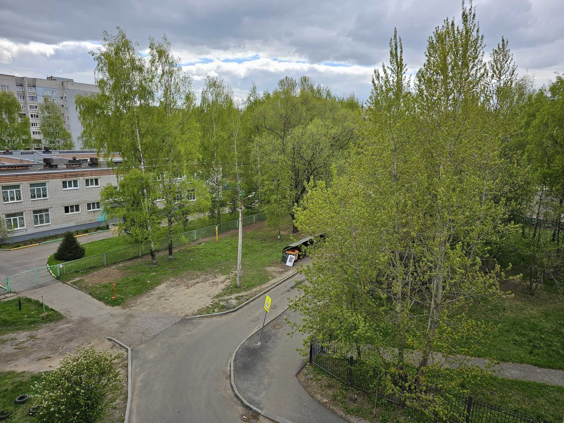 Прекрасный вид из окна на посадки школьного двора.