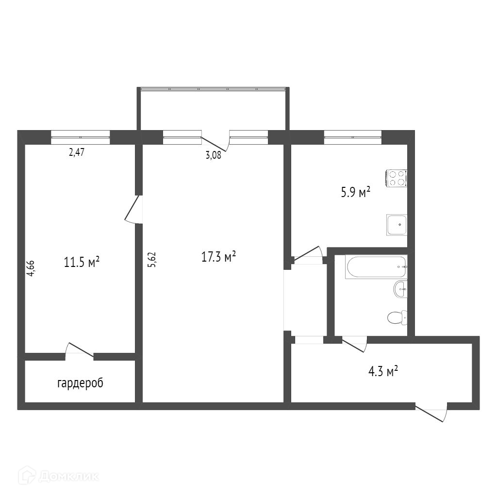 Общая площадь 44 м2