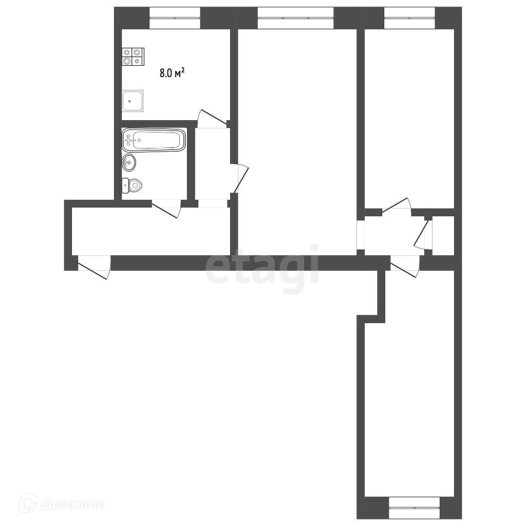 3-комнатная квартира, 60.8 м2, этаж 1 / 4, на продажу в Ярославле, Большая Октябрьская улица, 59
