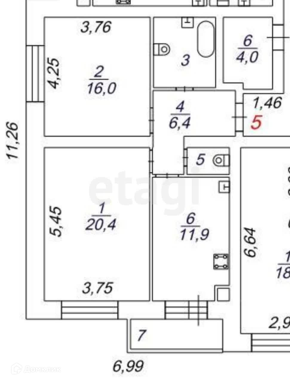 Общая площадь 61.8 м2