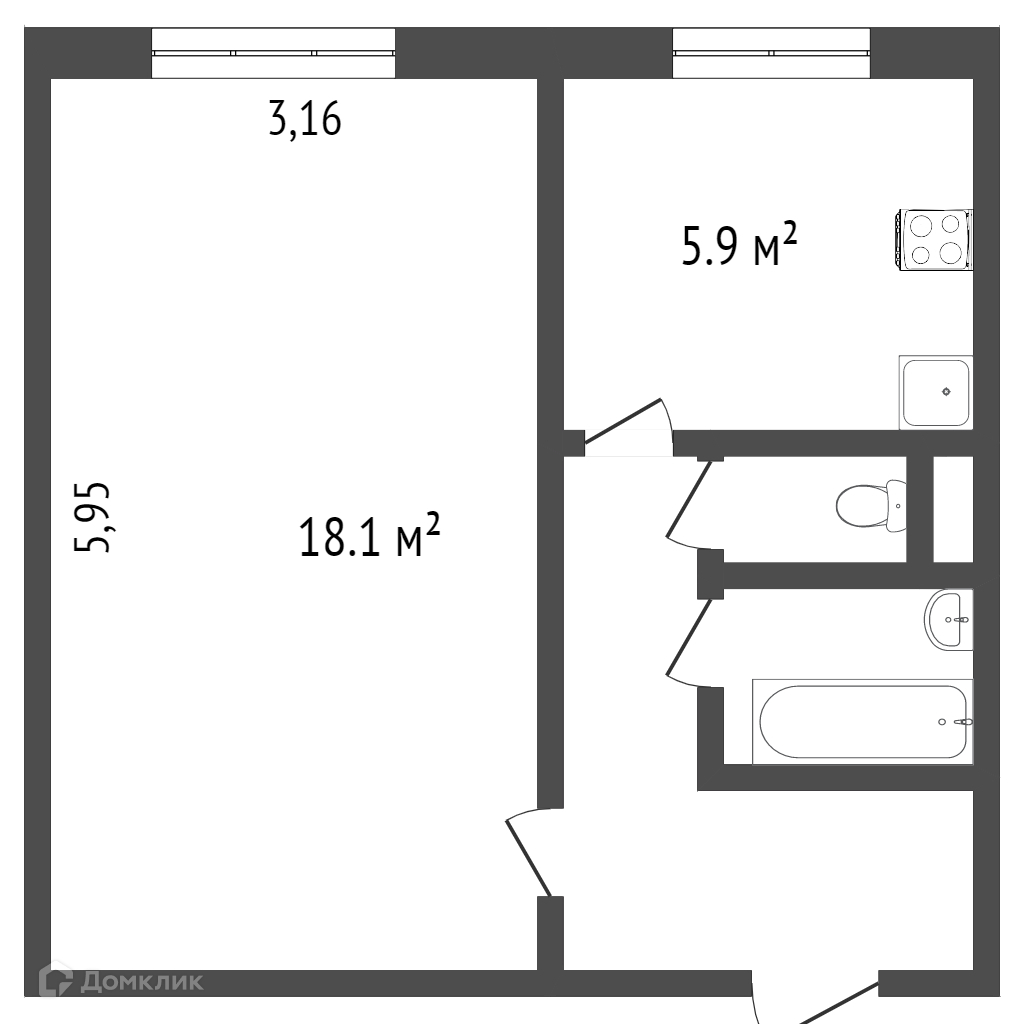 Площадь кухни 5.9 м2