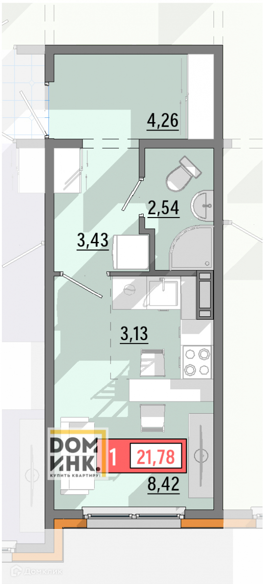 Общая площадь 21.7 м2