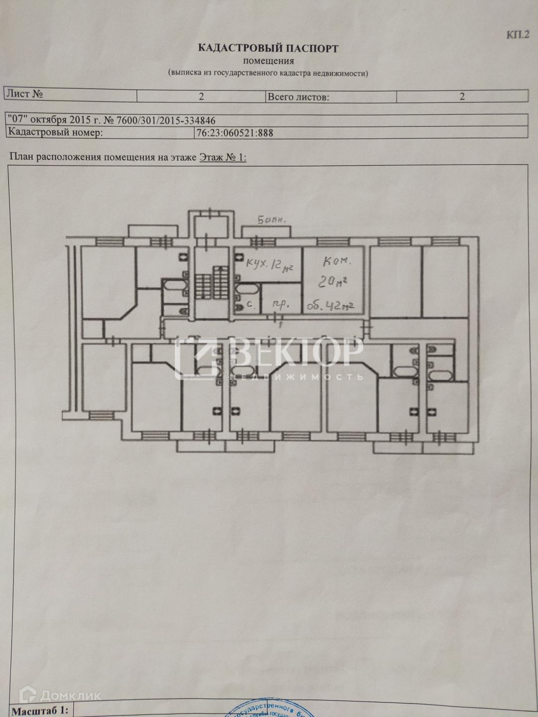 1-комнатная квартира, 42 м2, этаж 1 / 5, на продажу в Ярославле, улица Пирогова, 20А