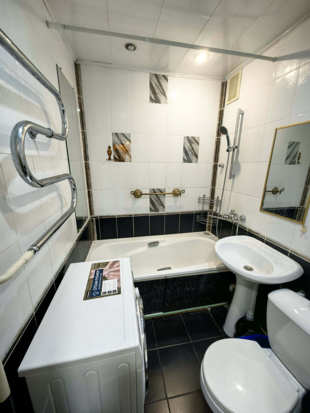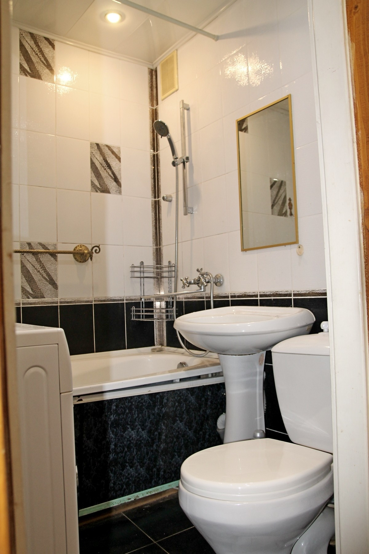 Санузел совмещенный, с хорошим ремонтом, трубы пластиковые, новая сантехника.