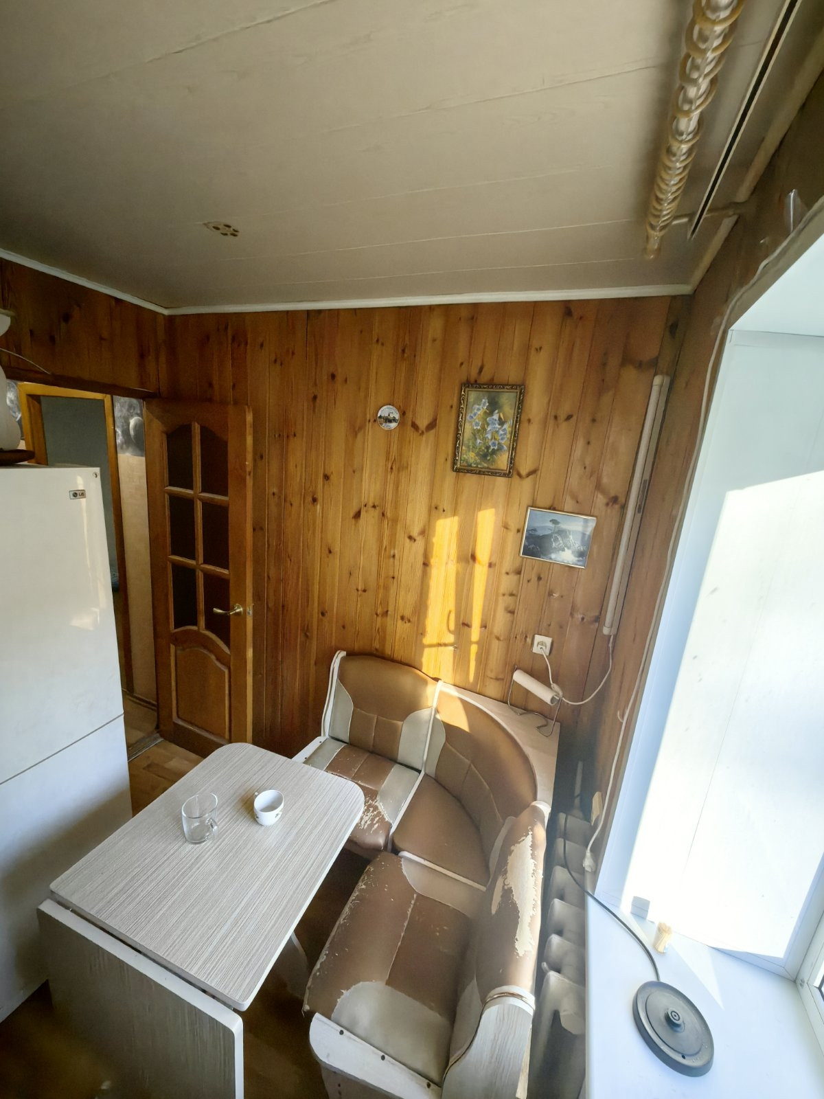 Балкон в гостиной застекленный, окна выходят во двор.