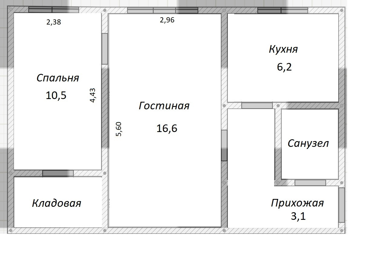 Общая площадь 44.3 м2