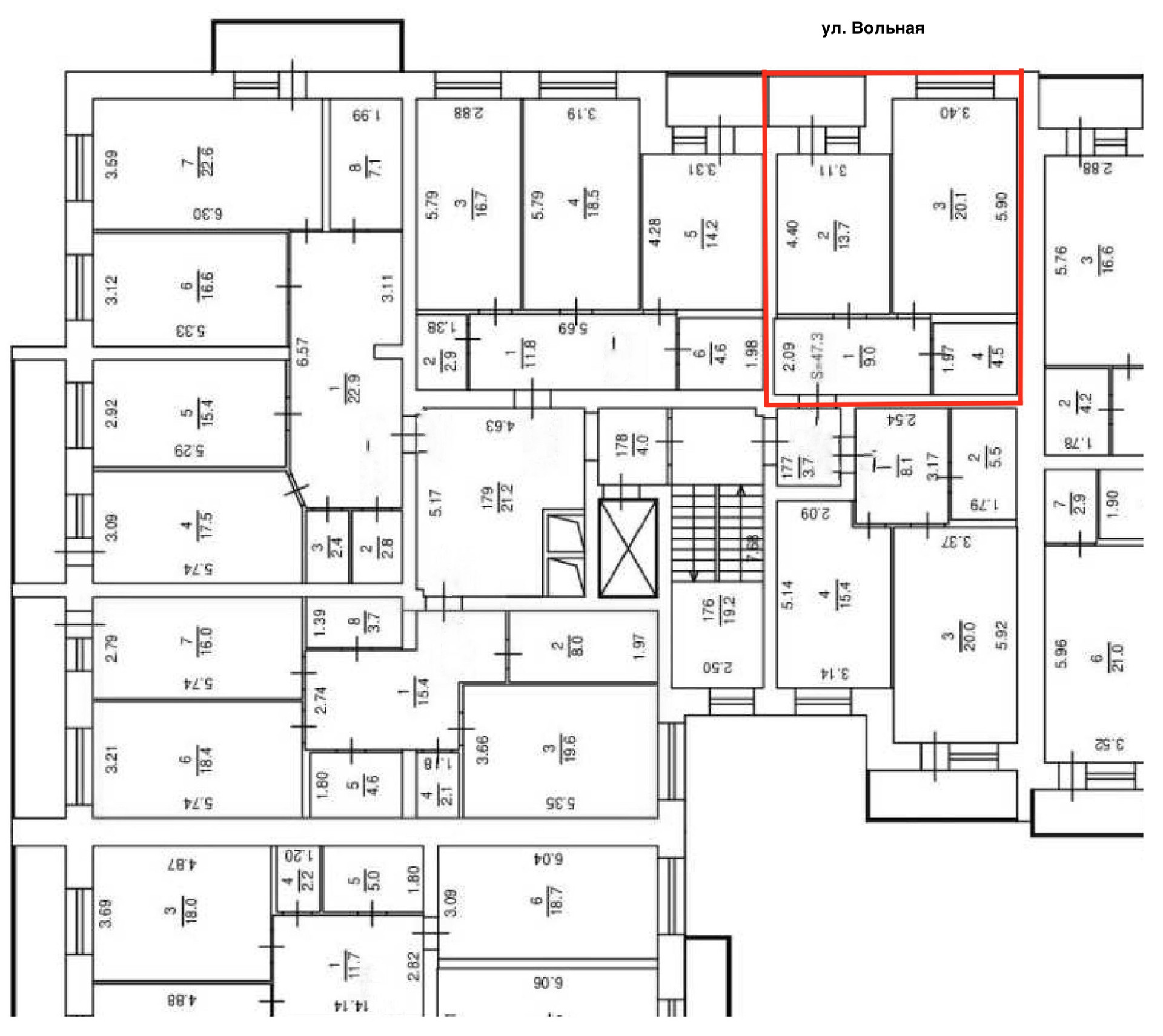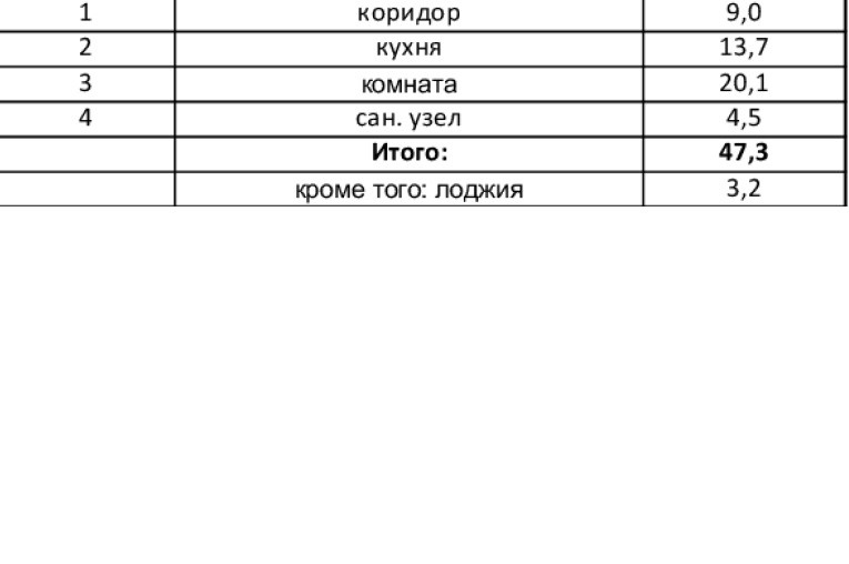 Общая площадь 47.3 м2