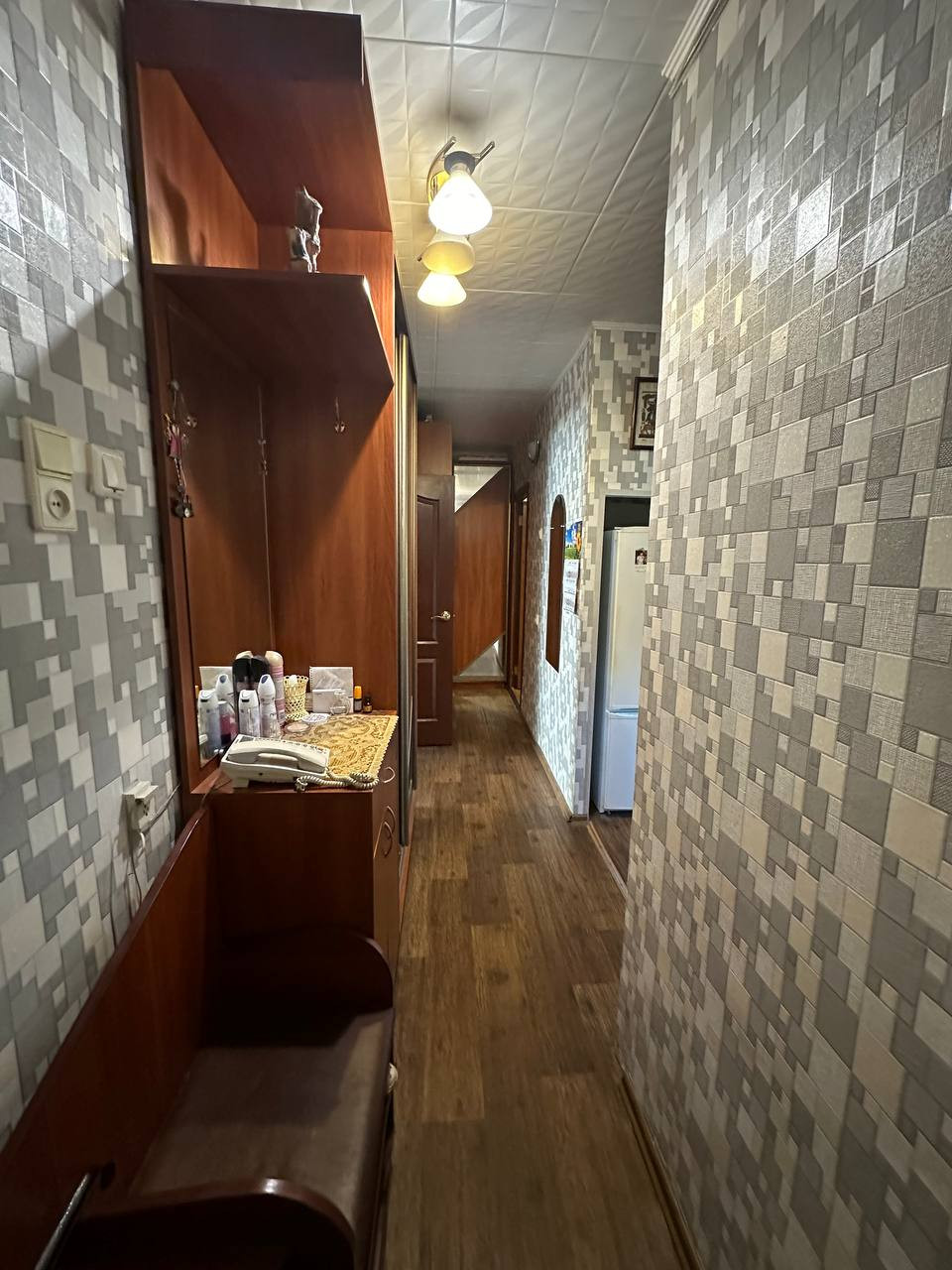 При продаже в квартире остается: кухонный гарнитур, шкаф-купе в коридоре.