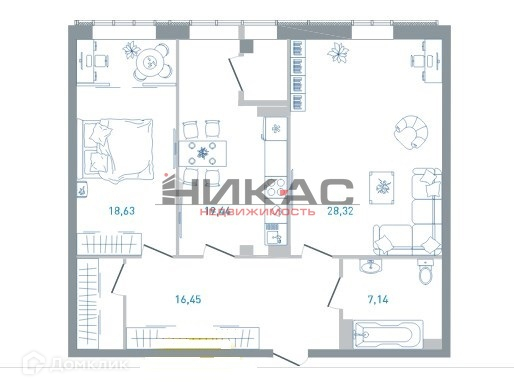 Жилая площадь 46.95 м2