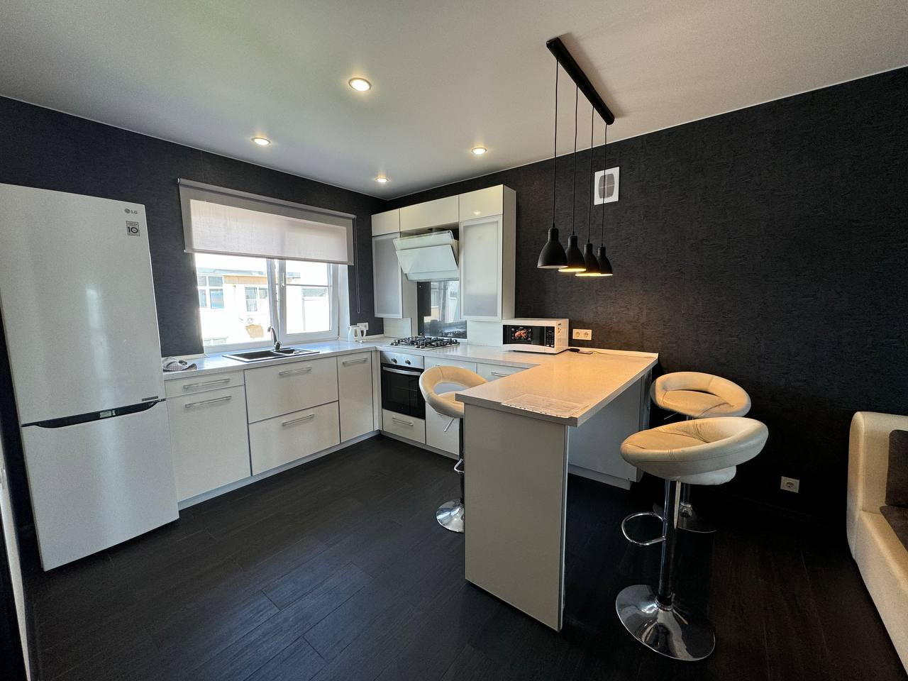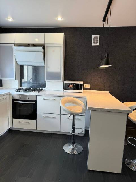 Квартира имеет продуманный дизайнерский ремонт, который добавляет ей особый шарм и создает атмосферу уюта. Есть балкон, откуда открывается вид на храм Иоанна Златоуста. Санузел совмещенный.