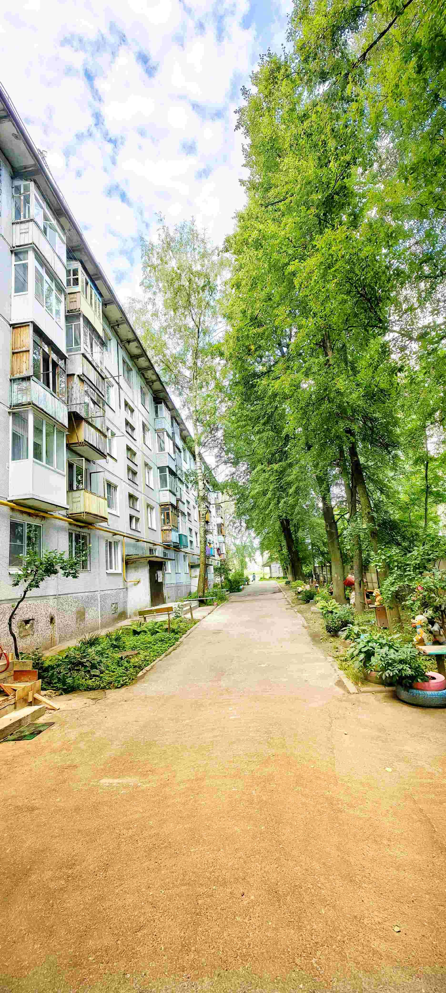 Территория вокруг дома включает детскую площадку, наземную парковку, асфальтовый подъезд. Квартира отличается уникальной планировкой.