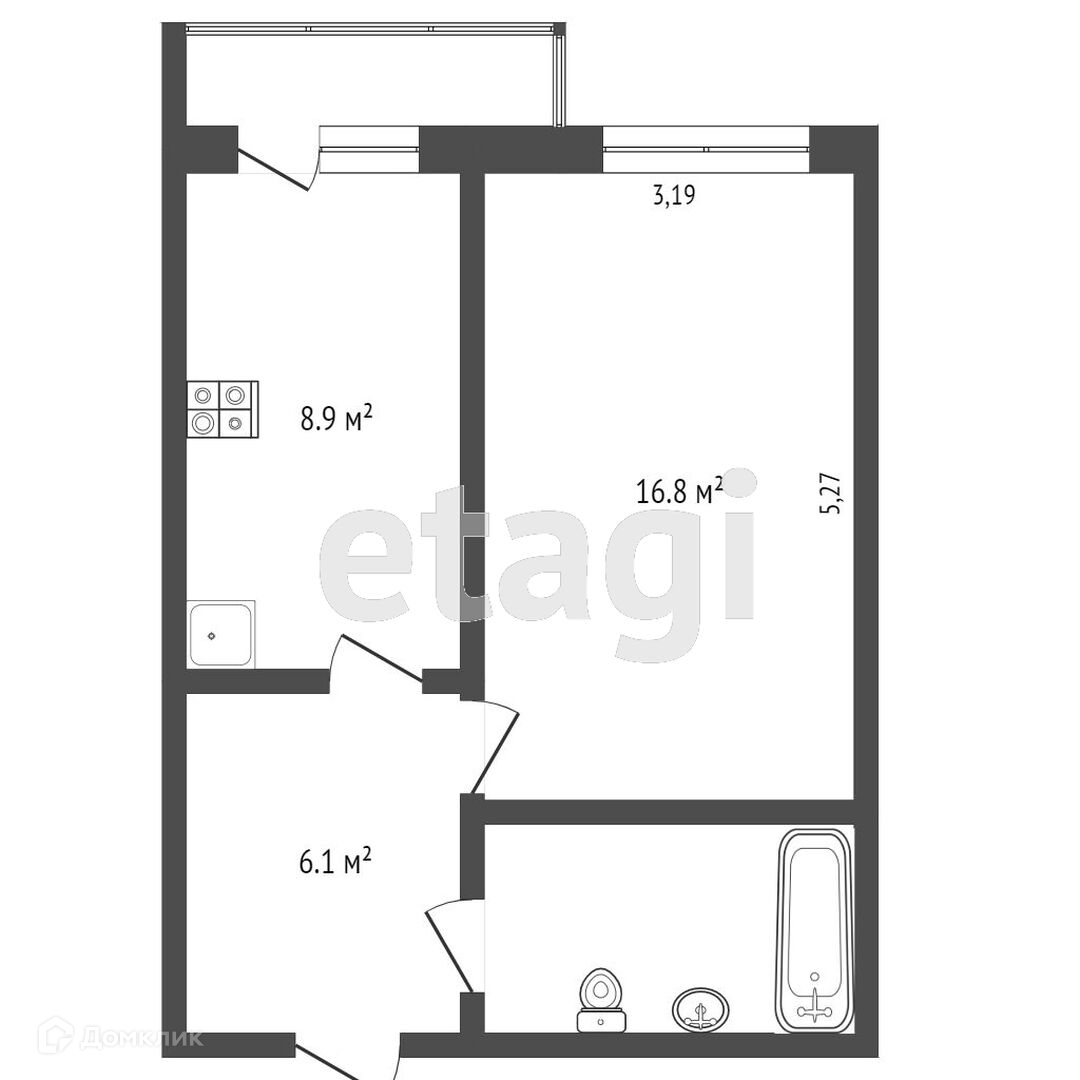 Балкон, лоджия 1 балкон