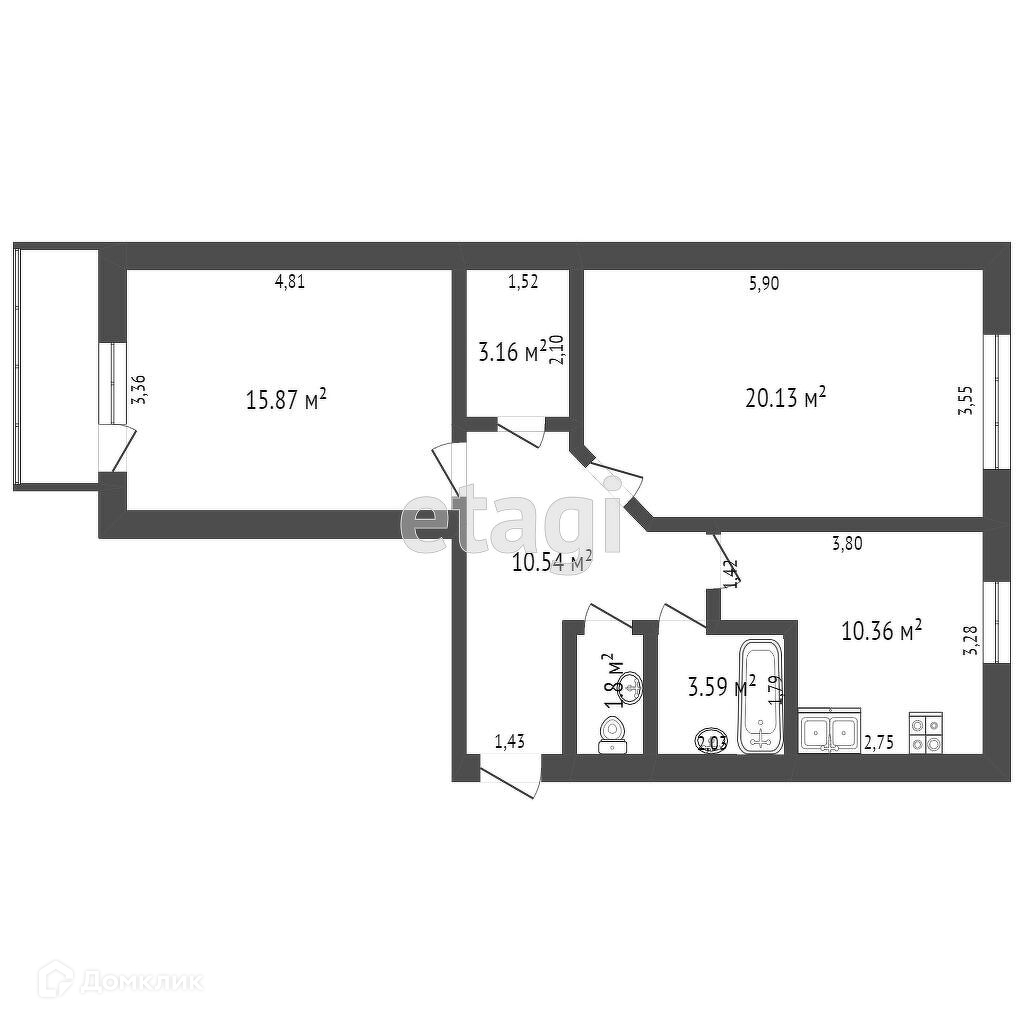 Балкон, лоджия 1 балкон
