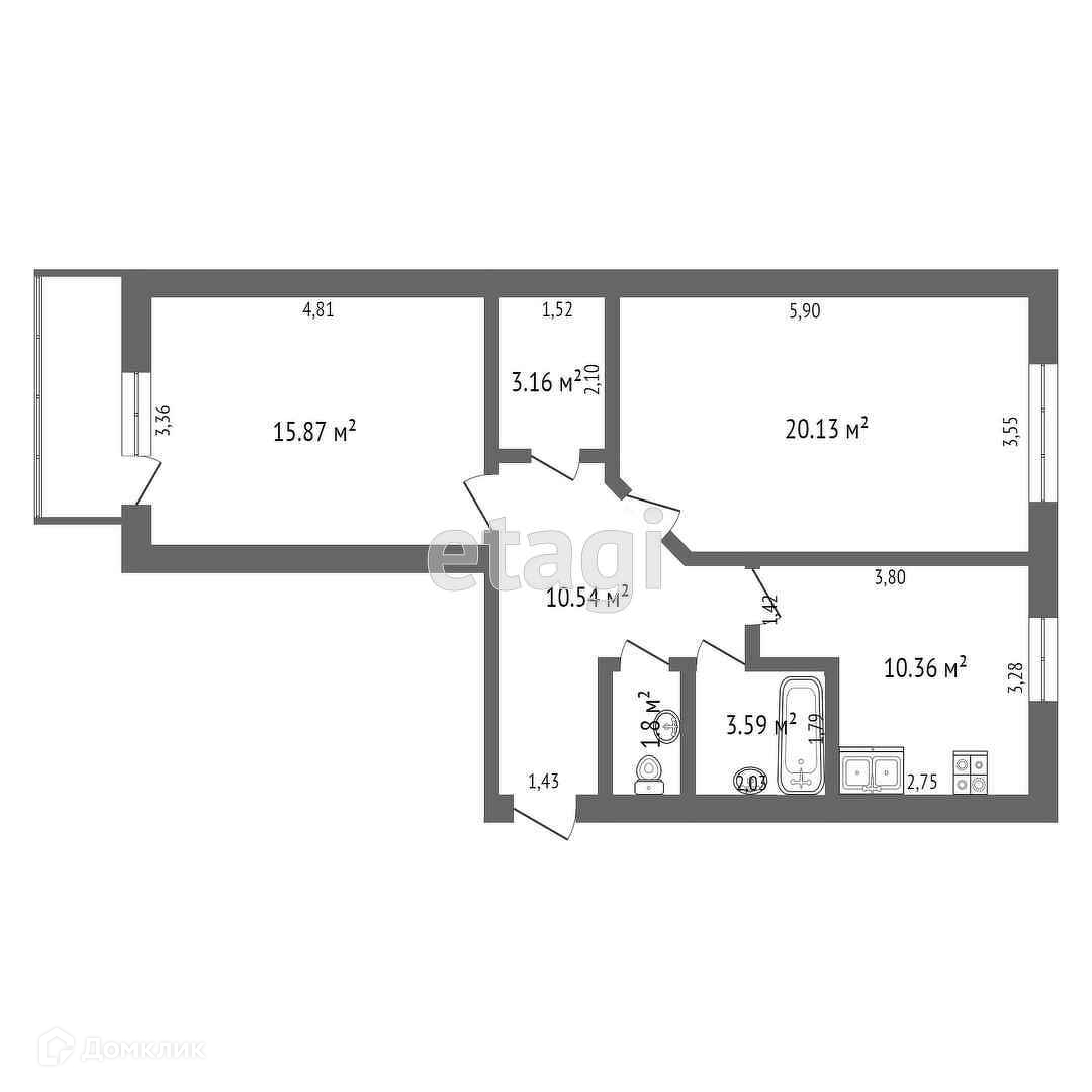 Общая площадь 70 м2