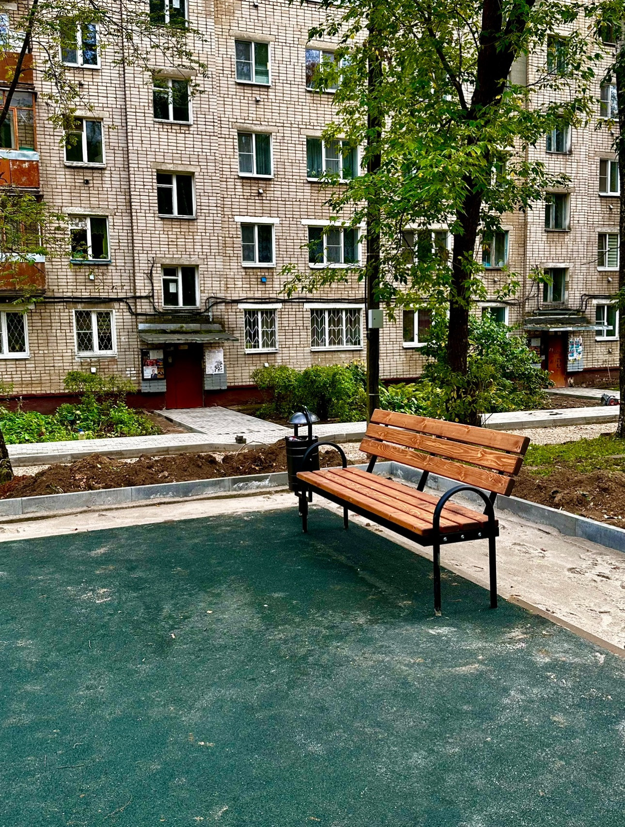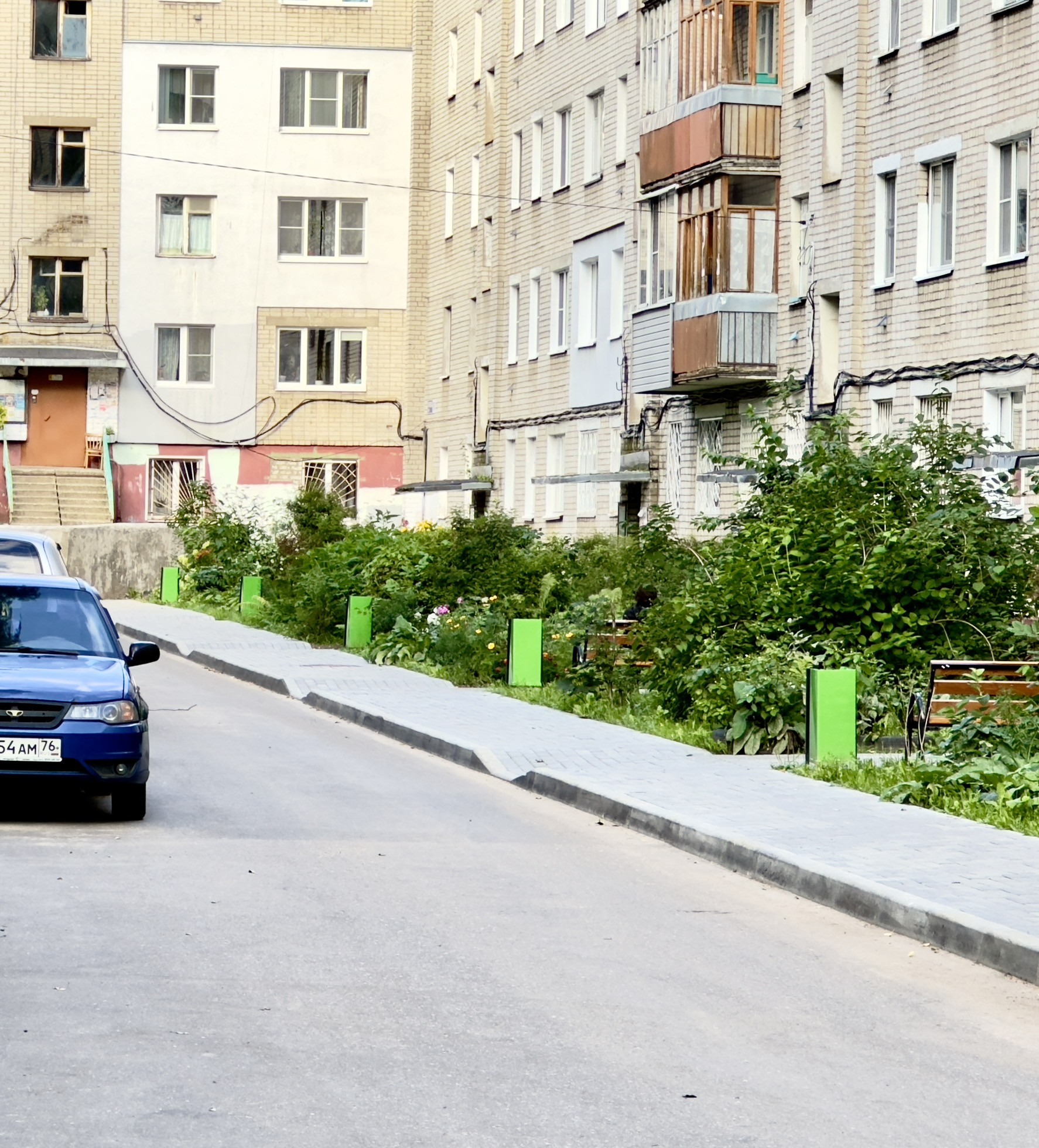 Двор, недавно, благоустроен - вымощен плиткой и оборудована детская площадка, установлены видеокамеры.