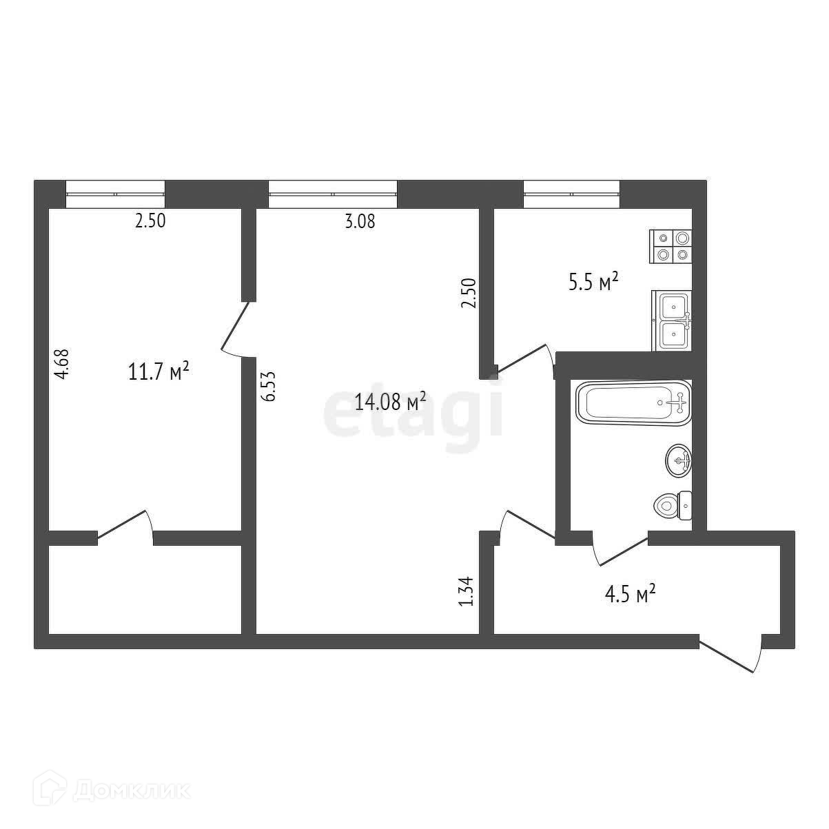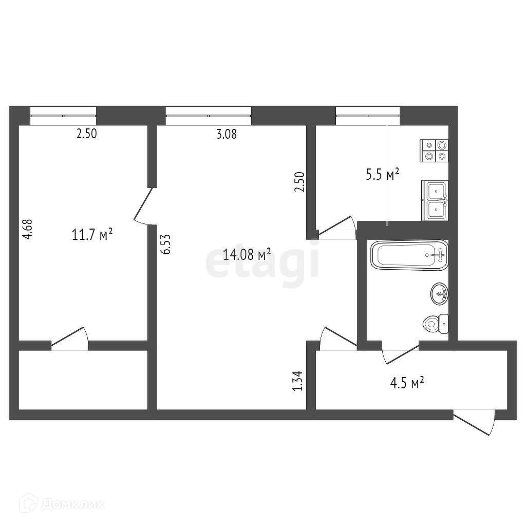 Общая площадь 45.6 м2