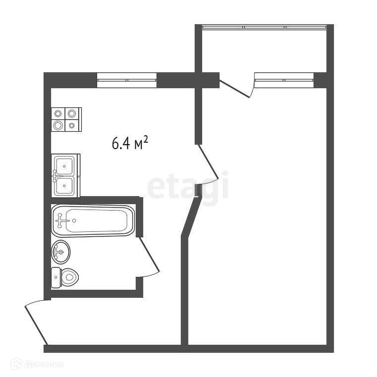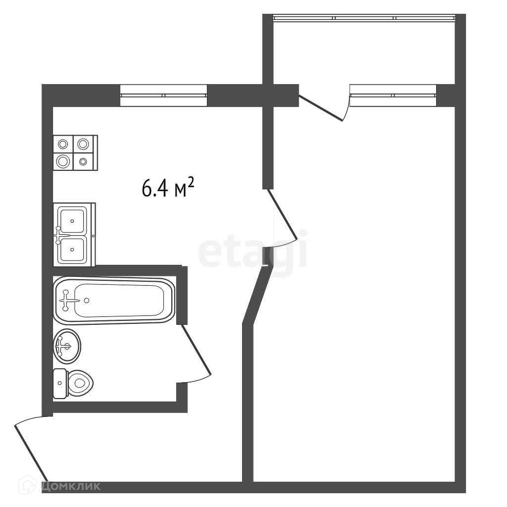 Площадь кухни 6.4 м2