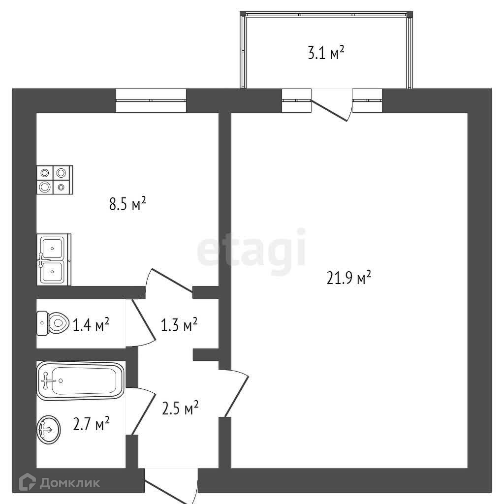 Общая площадь 31.8 м2