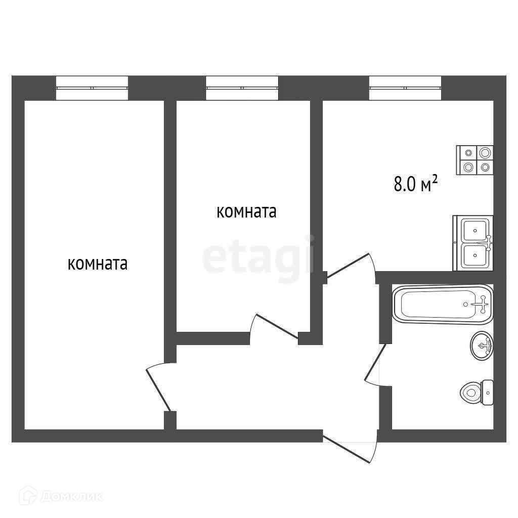 2-комнатная квартира, 45.6 м2, этаж 4 / 5, на продажу в Ярославле, проспект Дзержинского, 32