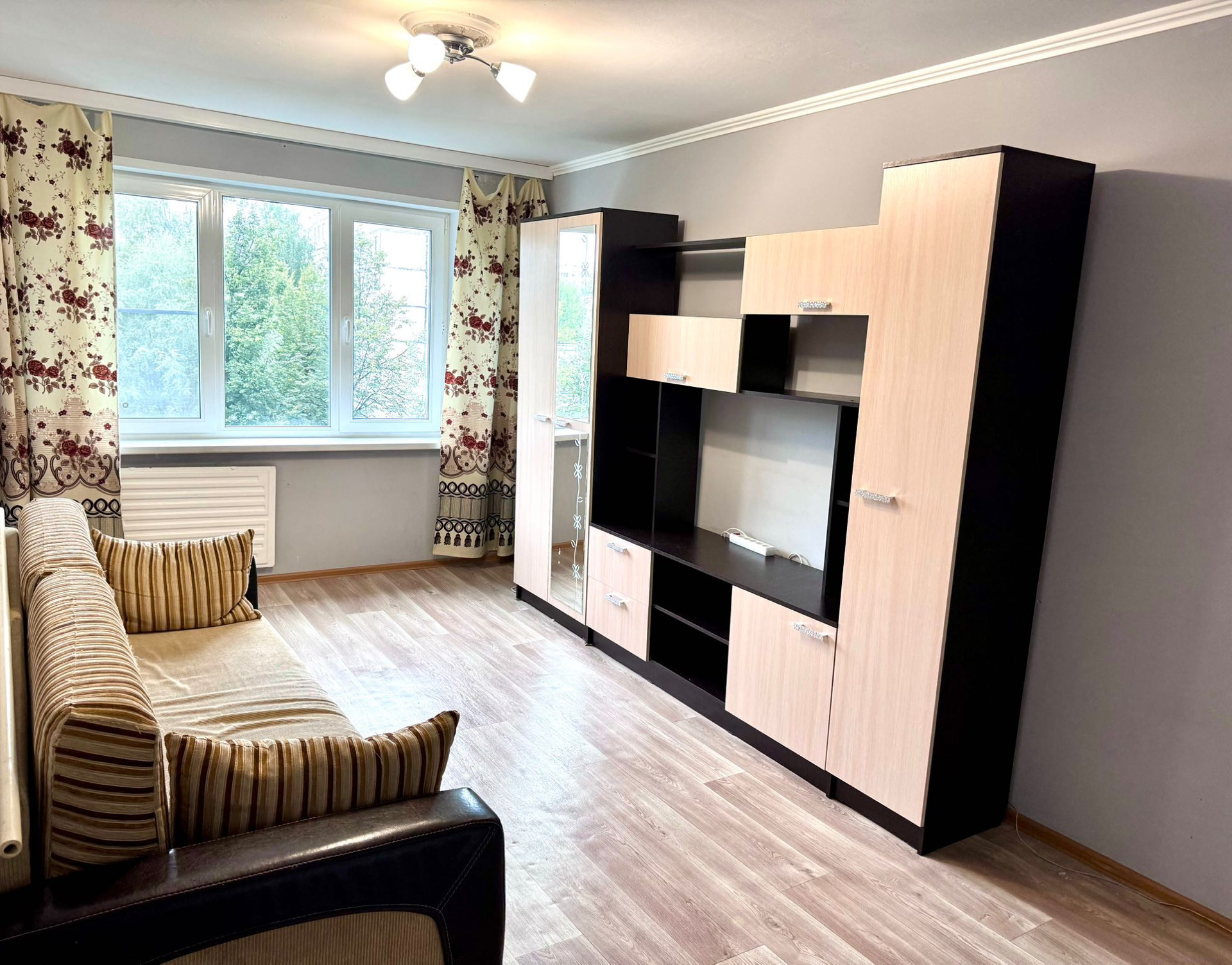 в квартире сделан косметический ремонт, окна ПВХ, линолеум, санузел-плитка, при продаже остается кухонный гарнитур, установлены приборы учета, окна выходят во двор.