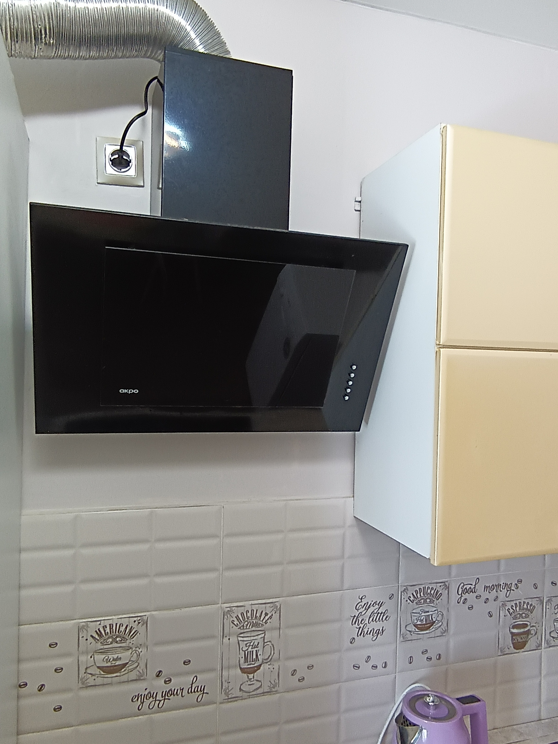 Кухня - 7 кв.м., установлен фильтр, остаётся кухонный гарнитур, вытяжка.