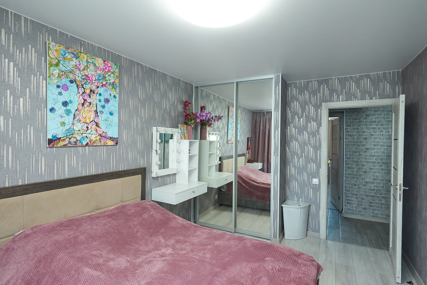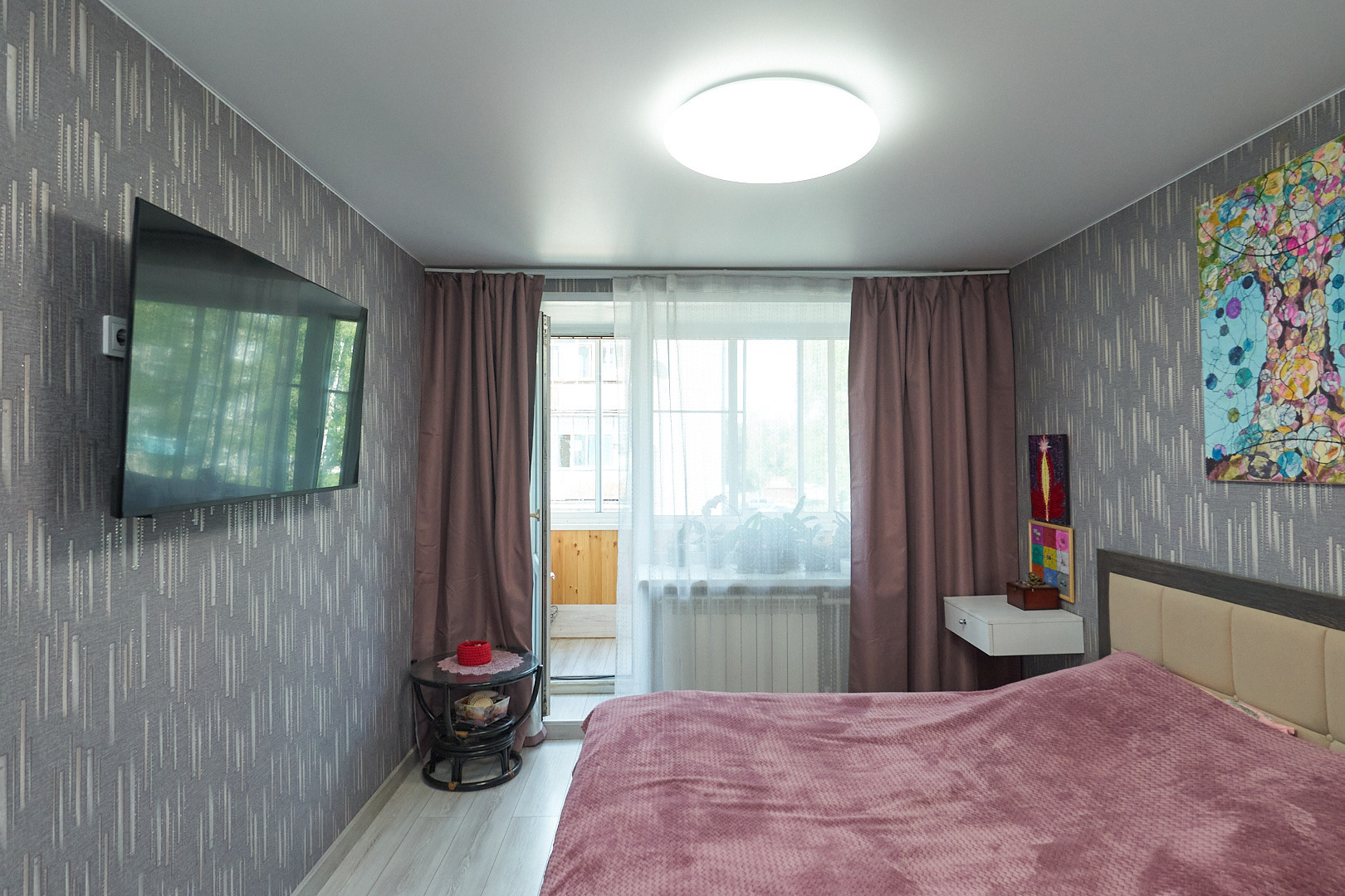 На кухне,в гостиной и с/у пол кафель ( установлен тёплый пол), в других комнатах на полу ламинат. Натяжные потолки во всей квартире, она ПВХ, балкон застеклен, Произведена замена труб, радиаторов отопления, электропроводки, новая газовая колонка!