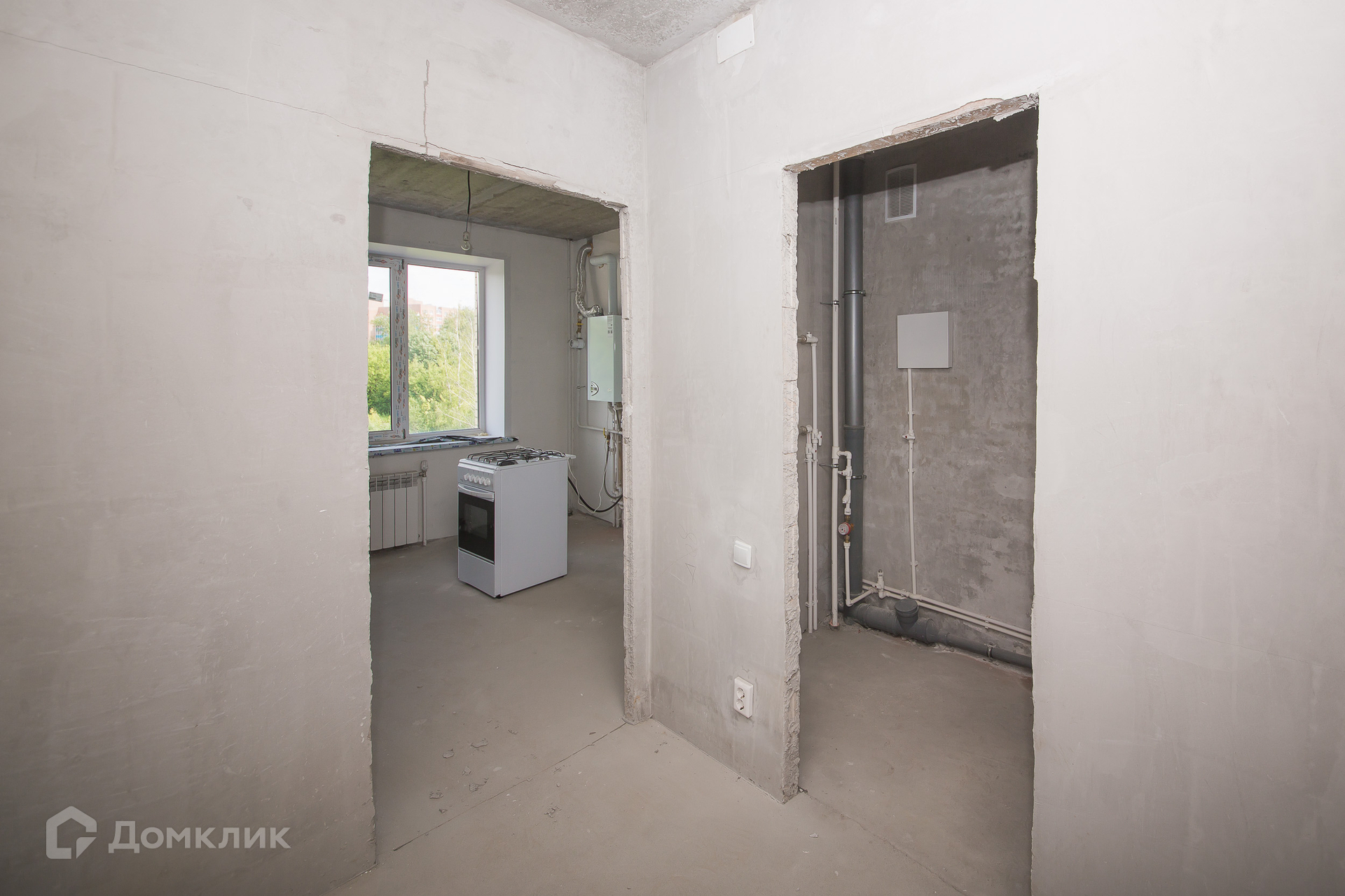 Выполнена предчистовая отделка - стены оштукатурены и выровнен пол. Установлены ПВХ окна.