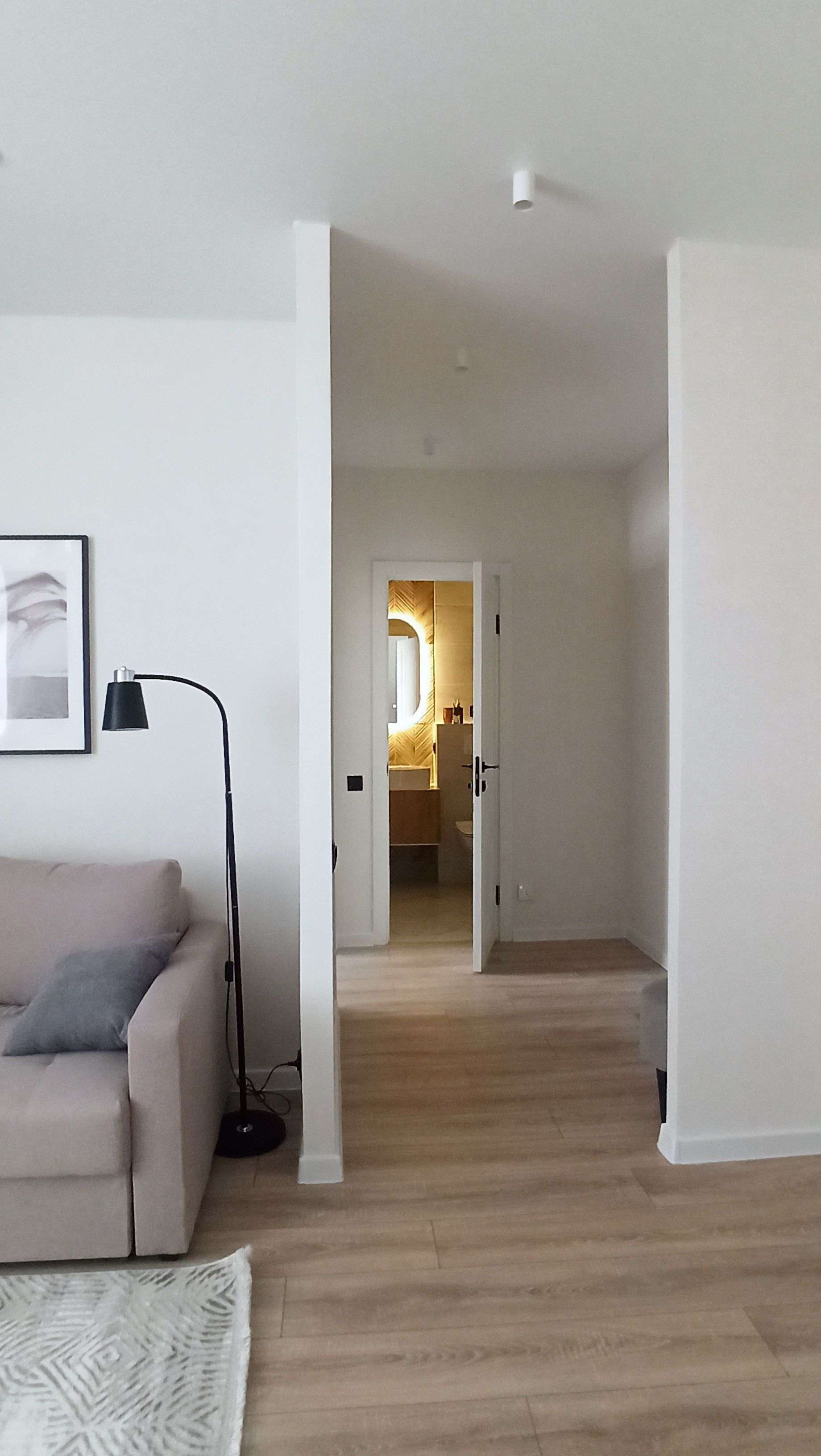 В квартире кухня-гостиная, спальня с гардеробной. Кухня-гостиная и спальня изолированы.