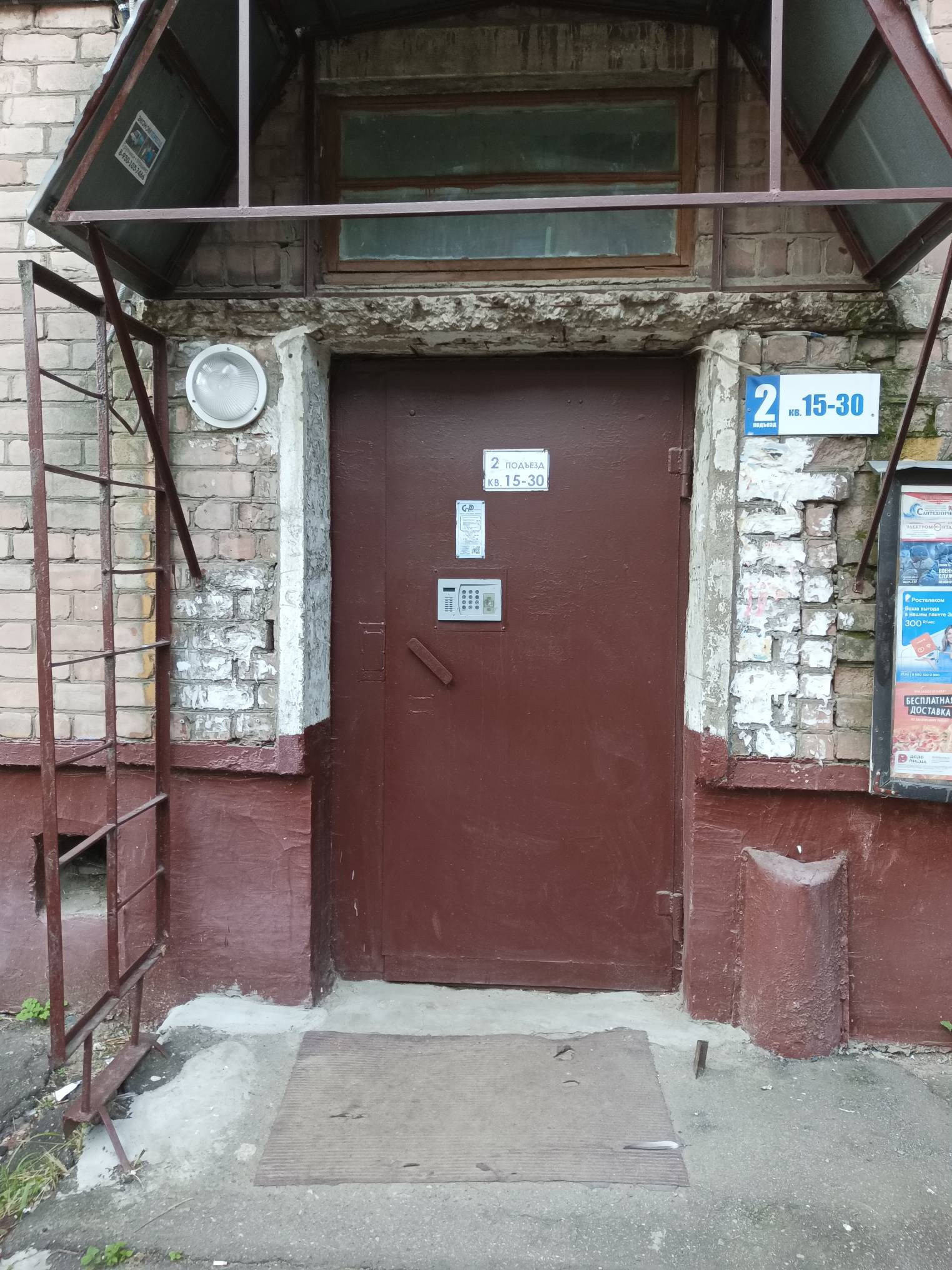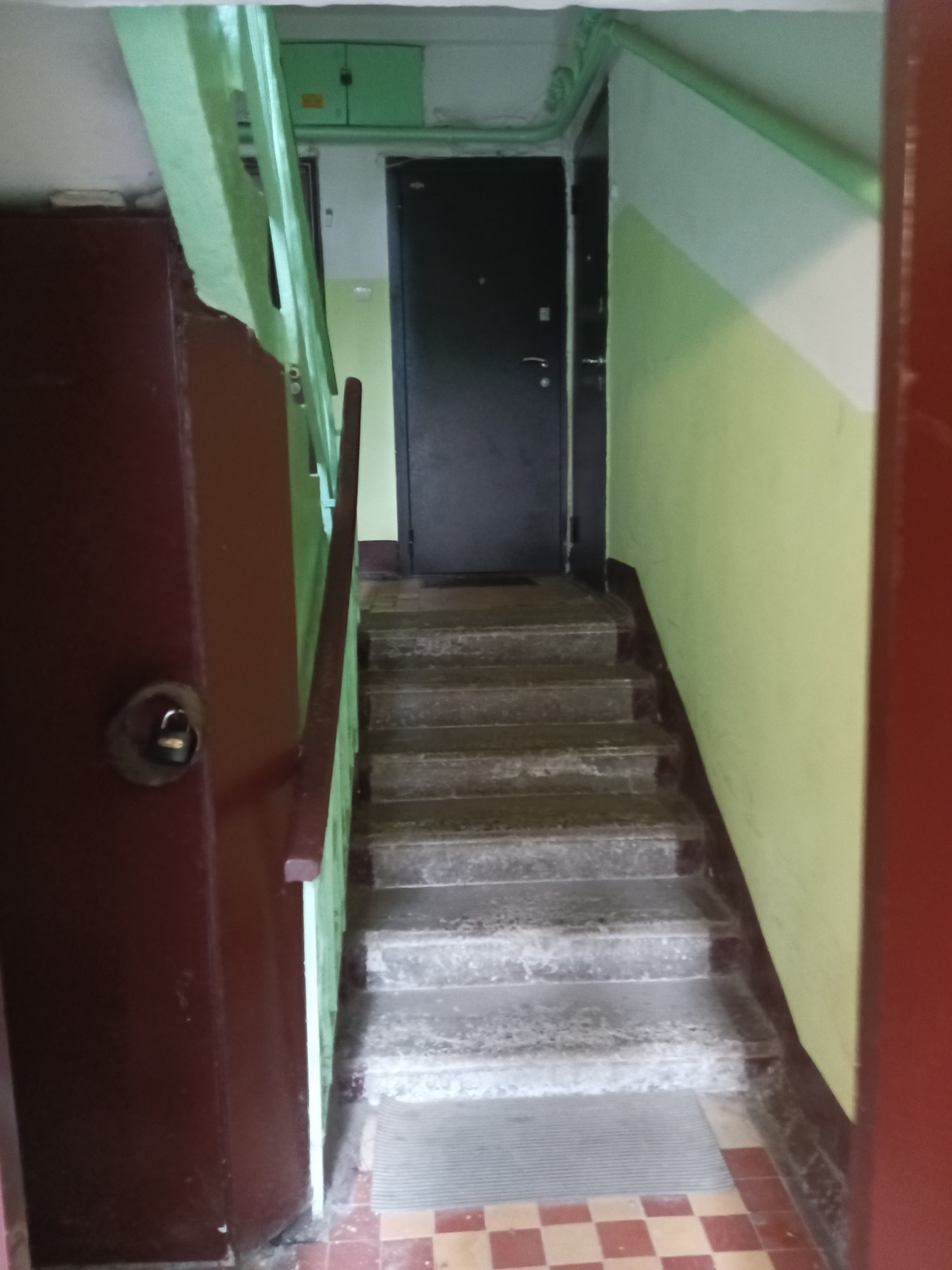 Чистый, уютный подъезд с свежим ремонтом.