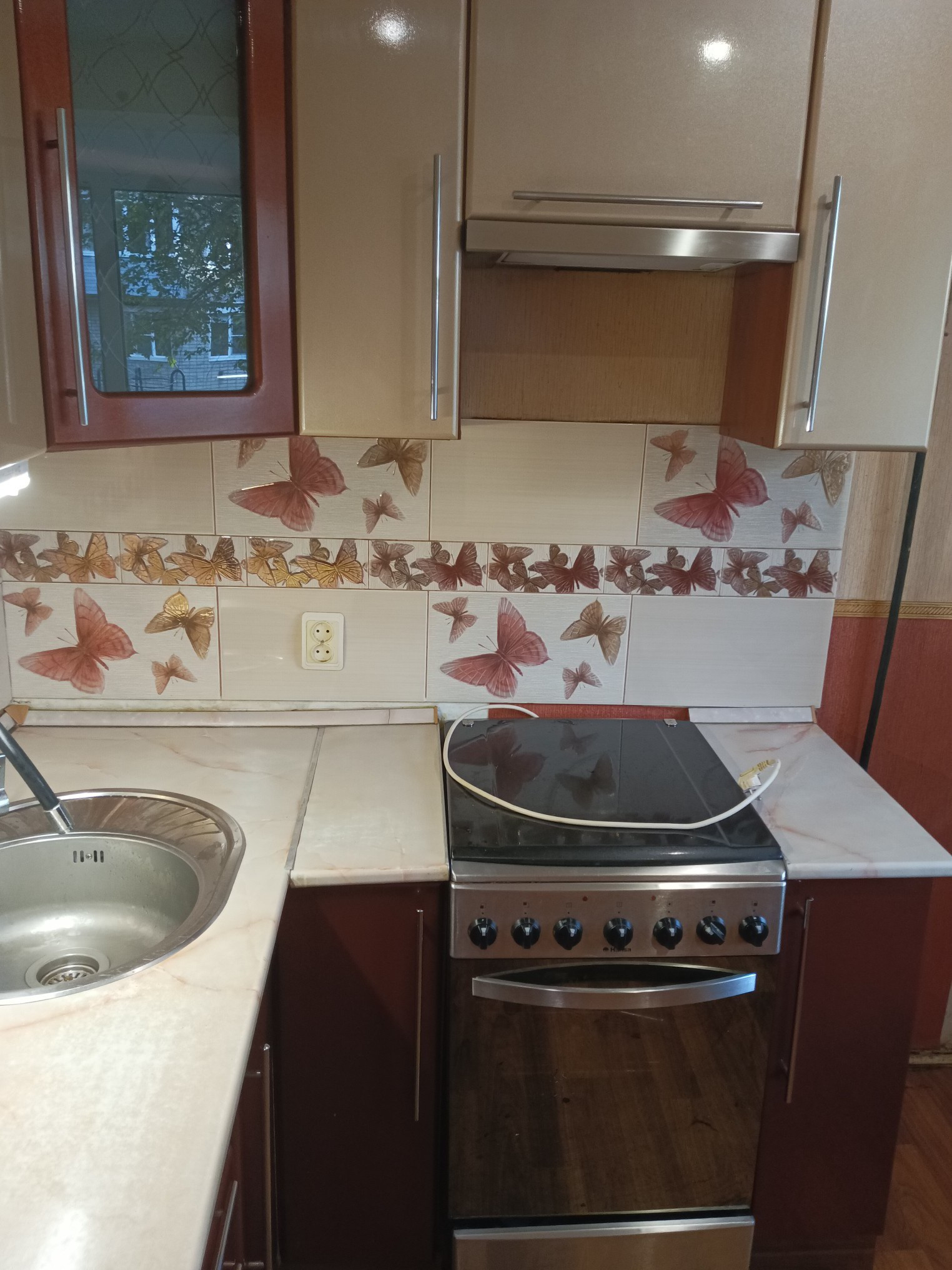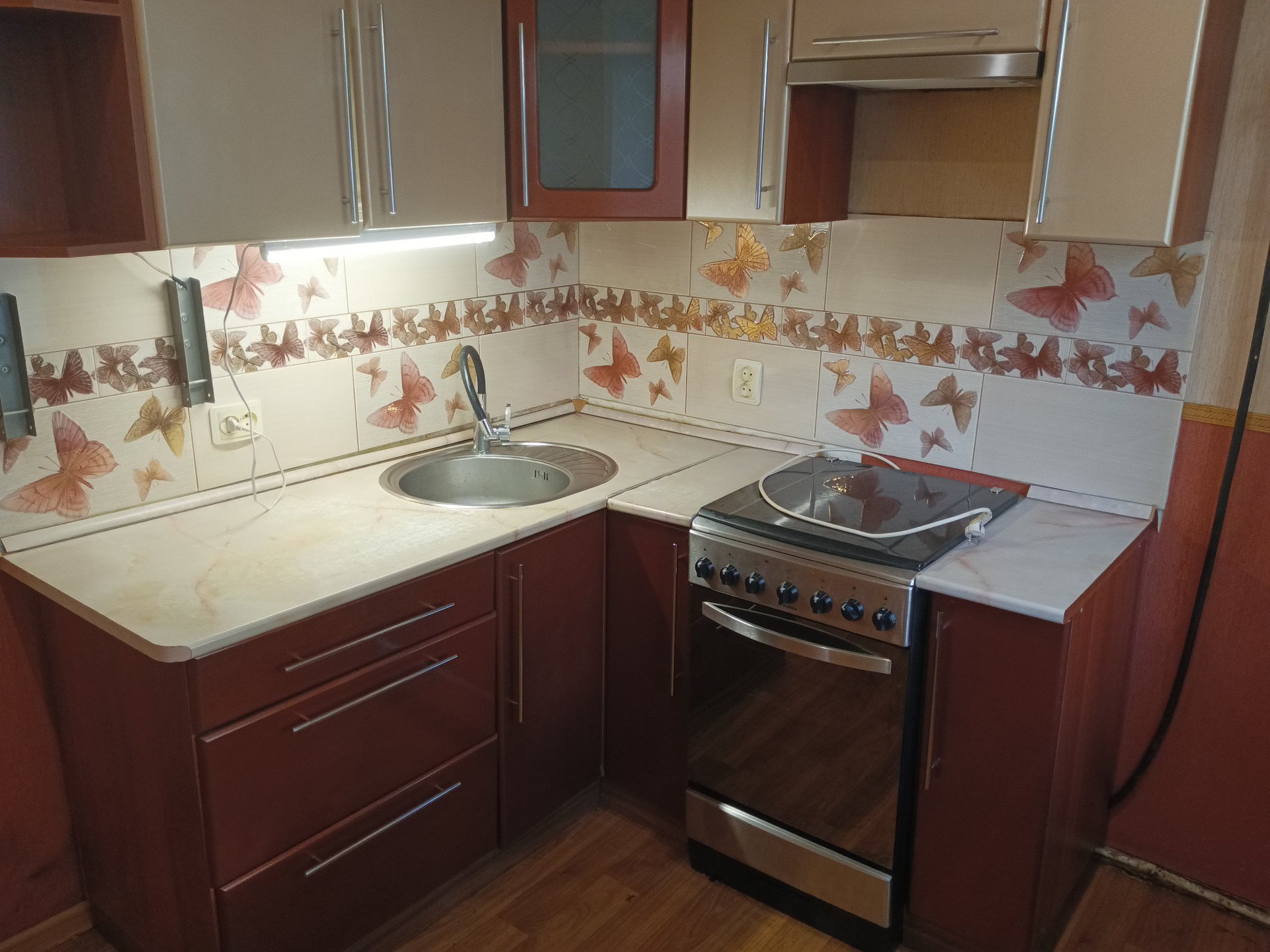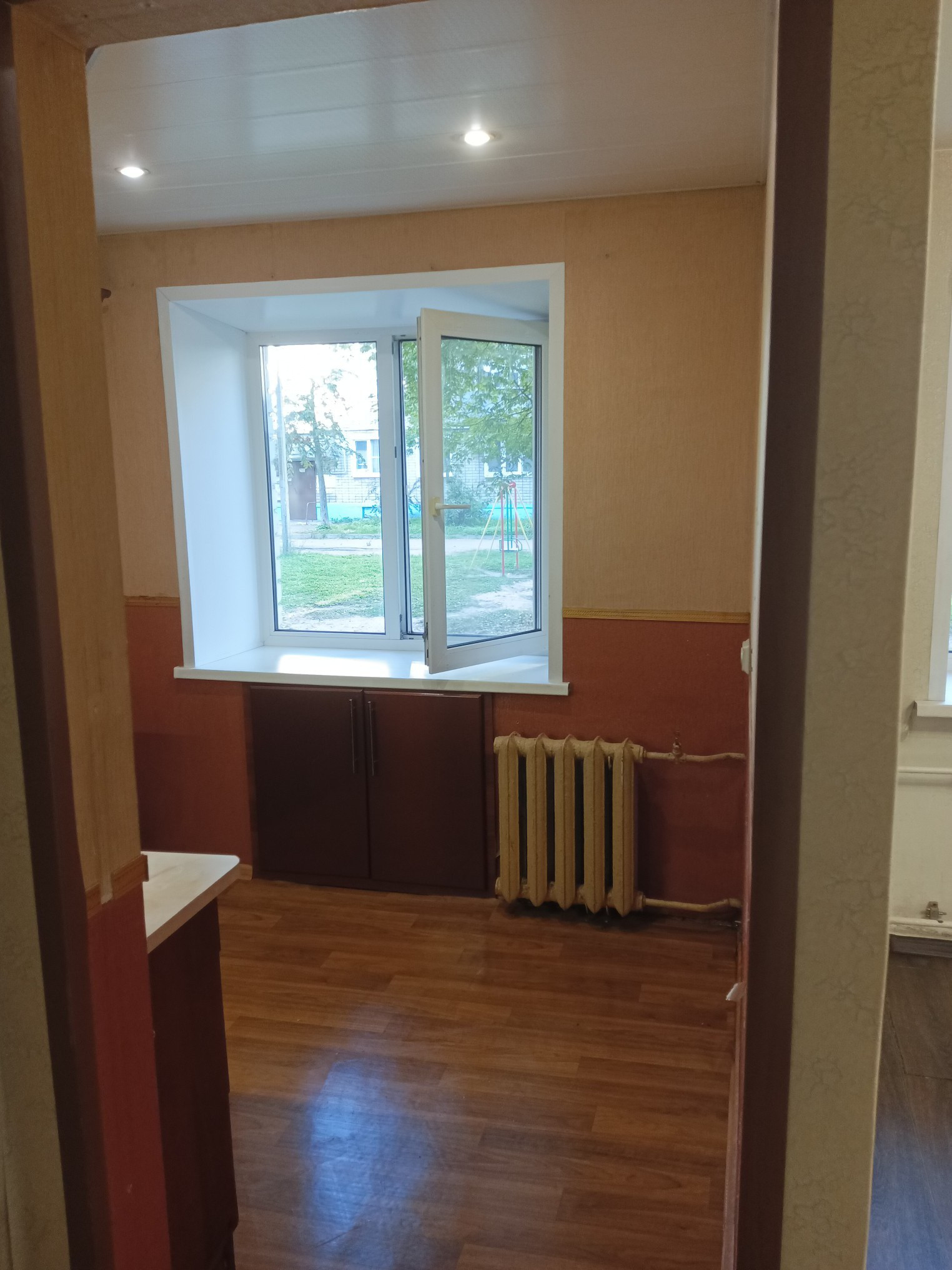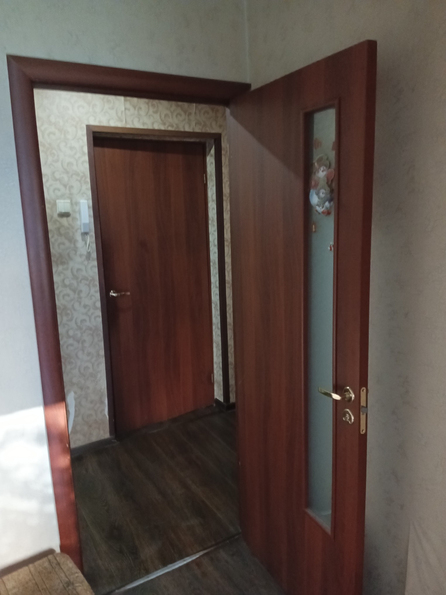 Квартира с перепланировкой. Раньше комнаты были проходные, теперь изолированы друг от друга. Ремонт делался давно, некоторые моменты требуют внимания, но первое время можно ничего не делать.
