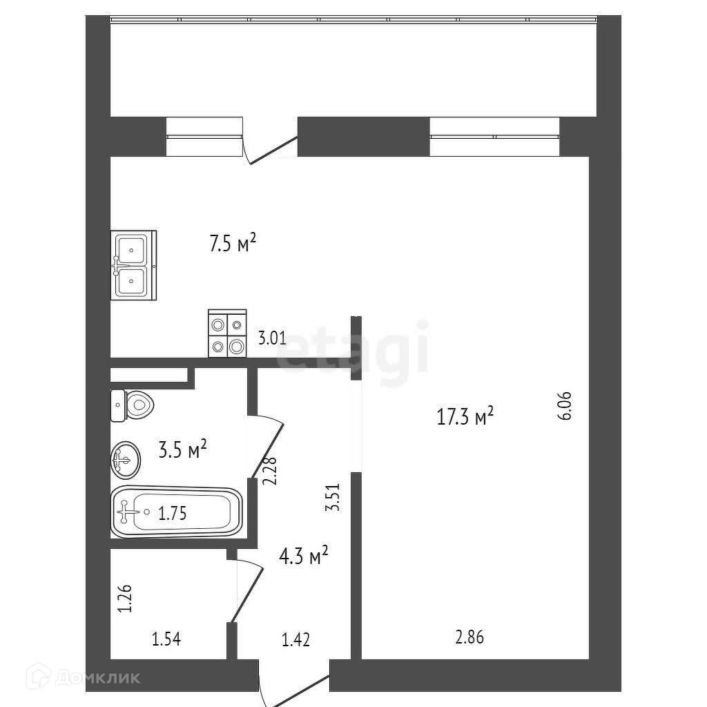 Общая площадь 34.5 м2