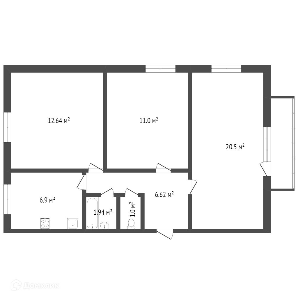 Балкон, лоджия 1 балкон