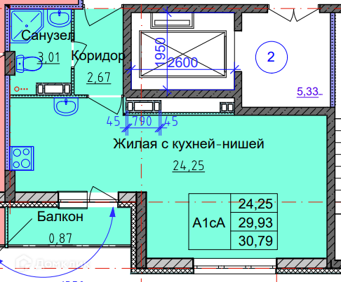 Общая площадь 31 м2