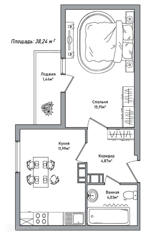 Общая площадь 38.24 м2