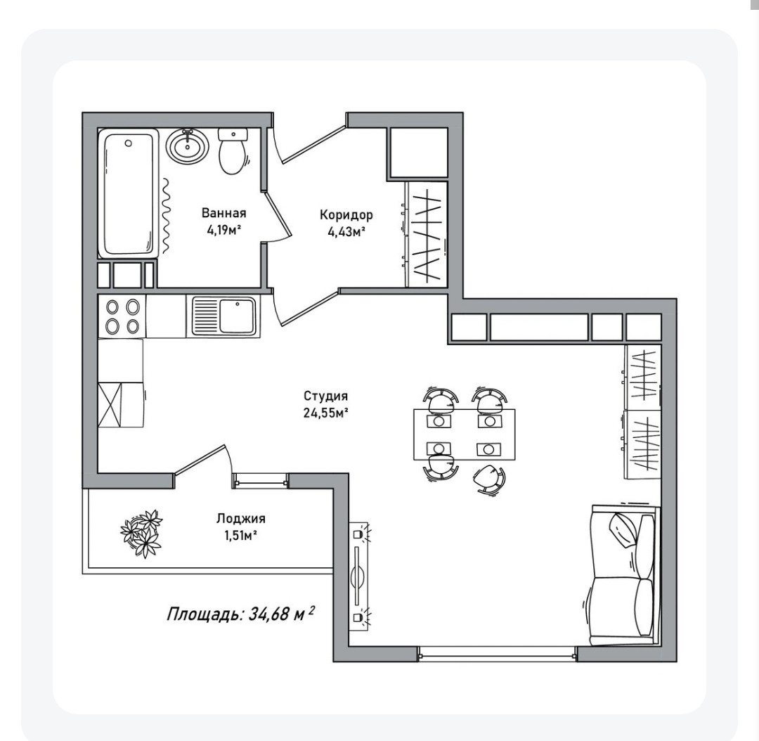 Общая площадь 30.89 м2