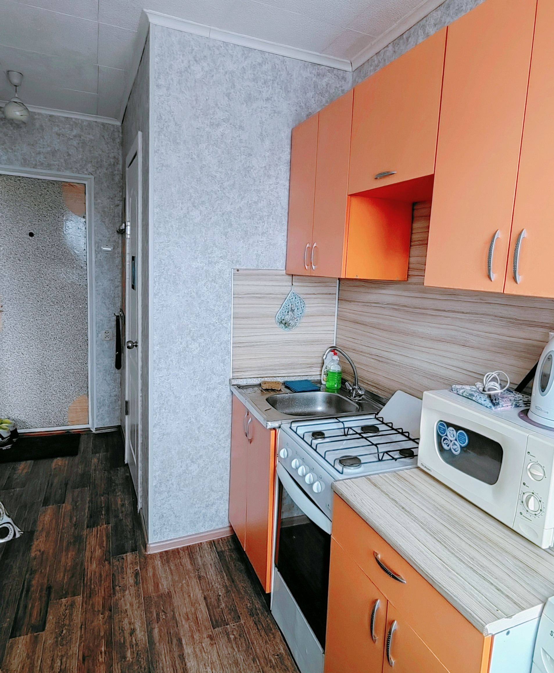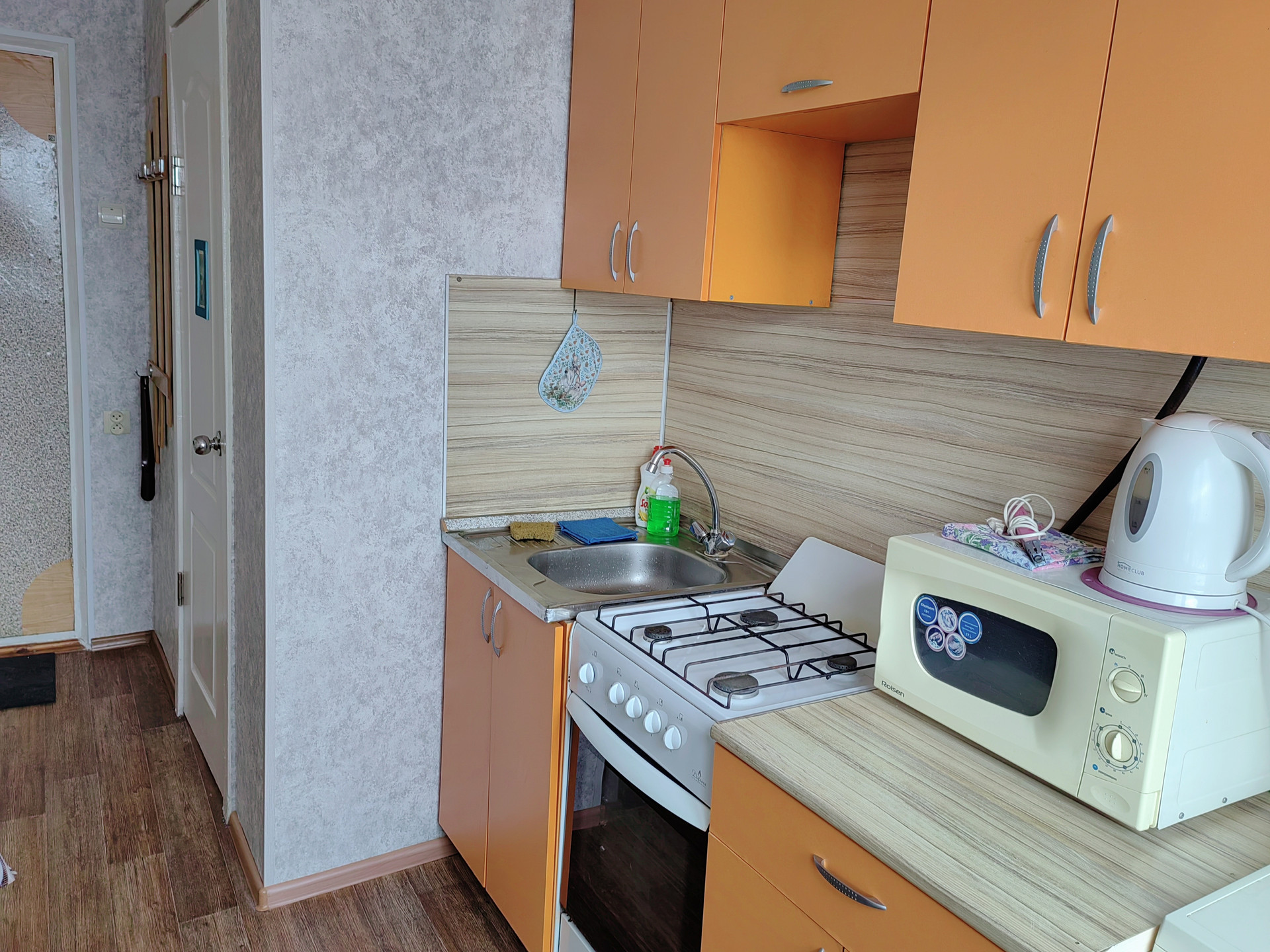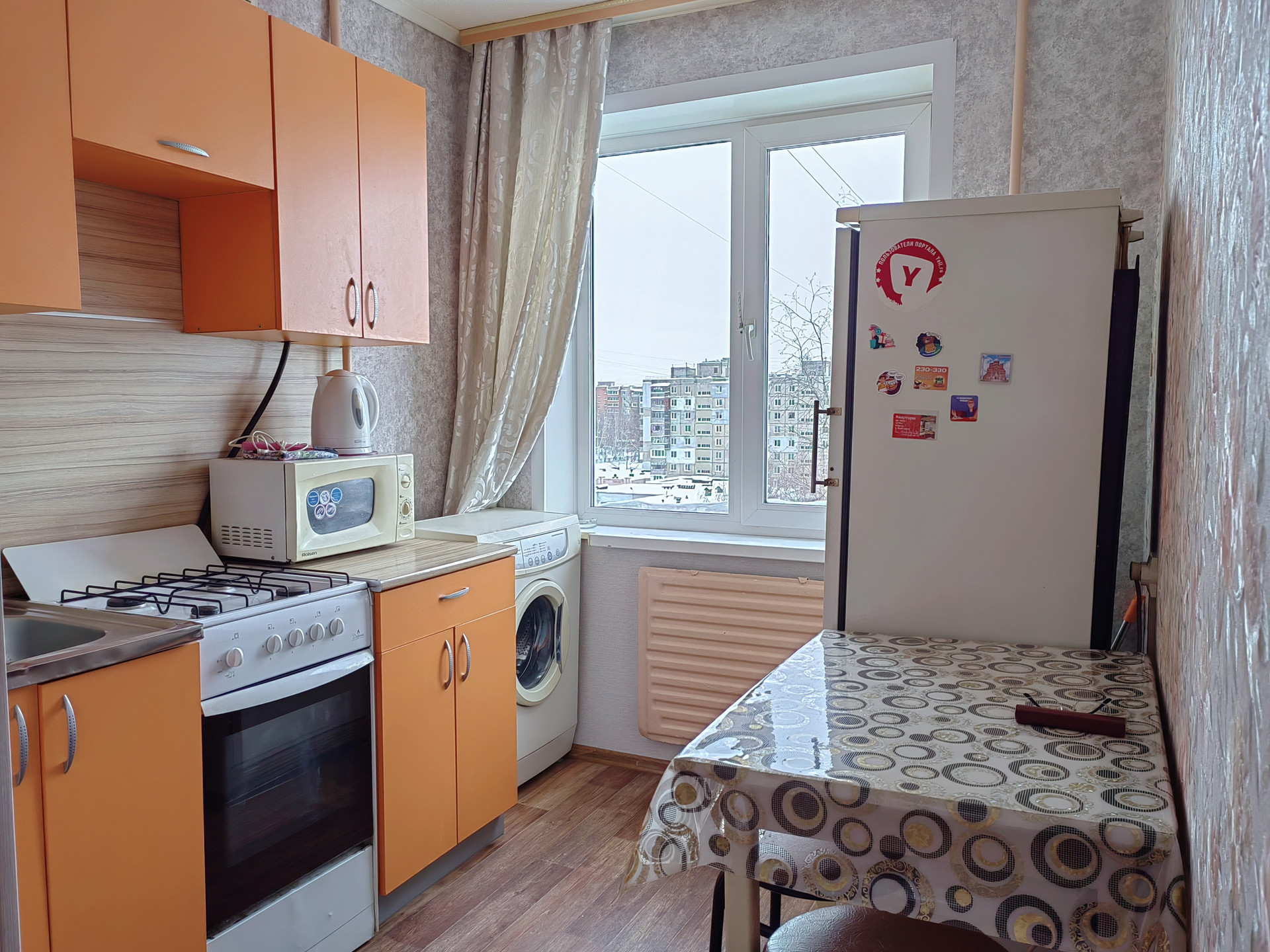 В квартире всё остаётся - мебель, стиральная машина, холодильник, микроволновка, телевизор, ...( всё как на фото)