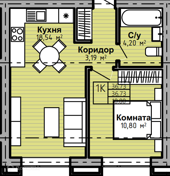 Общая площадь 36.73 м2