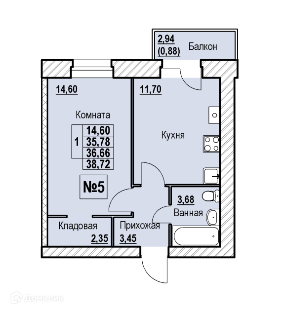 Общая площадь 38 м2