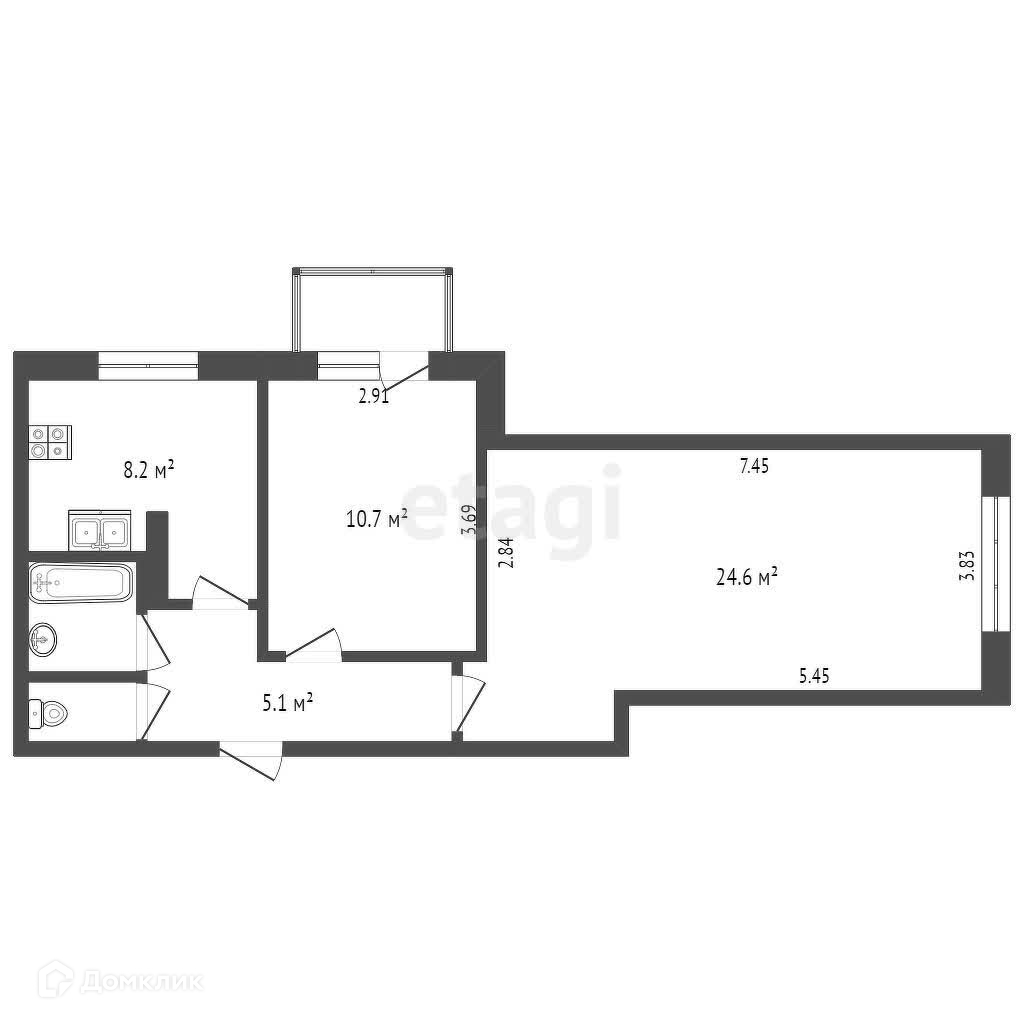 Балкон, лоджия 1 балкон