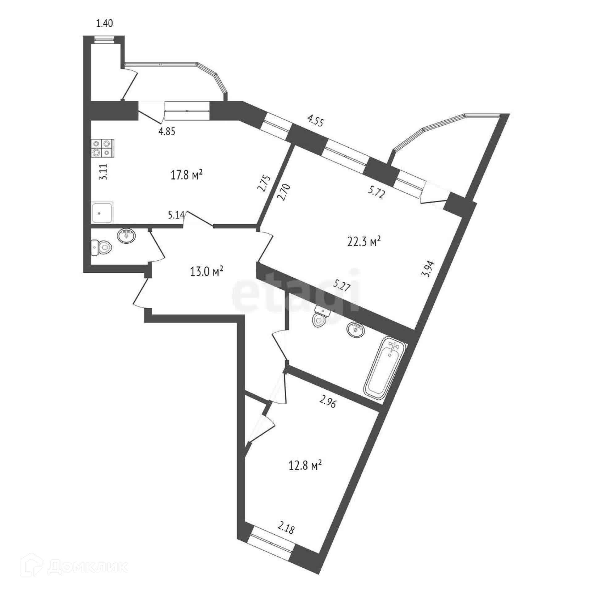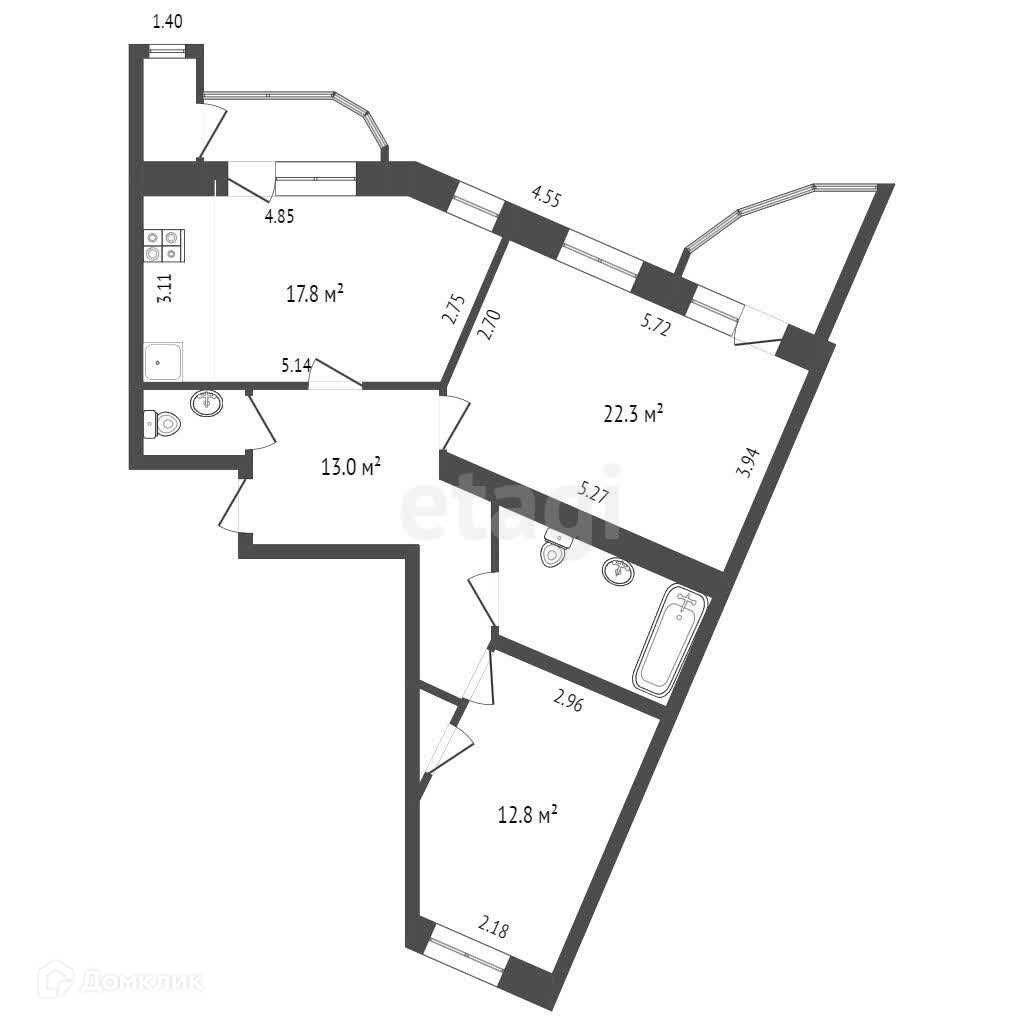Общая площадь 76 м2