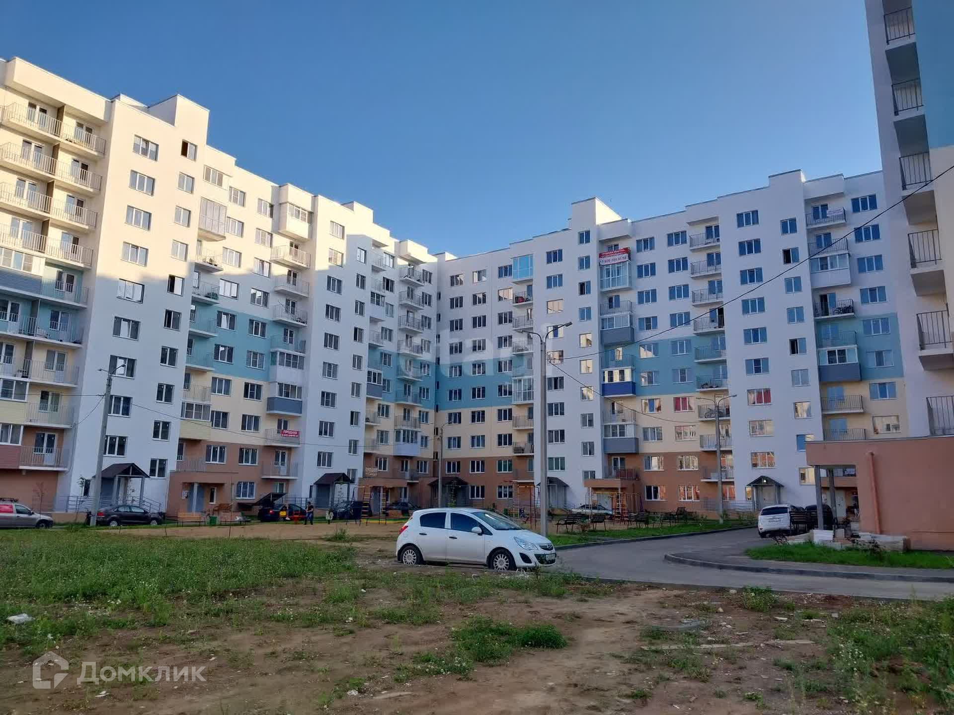 Внутренний двор комплекса благоустроен, организованы детские и спортивные площадки, зоны отдыха, продуктовые магазины и парковочные места.