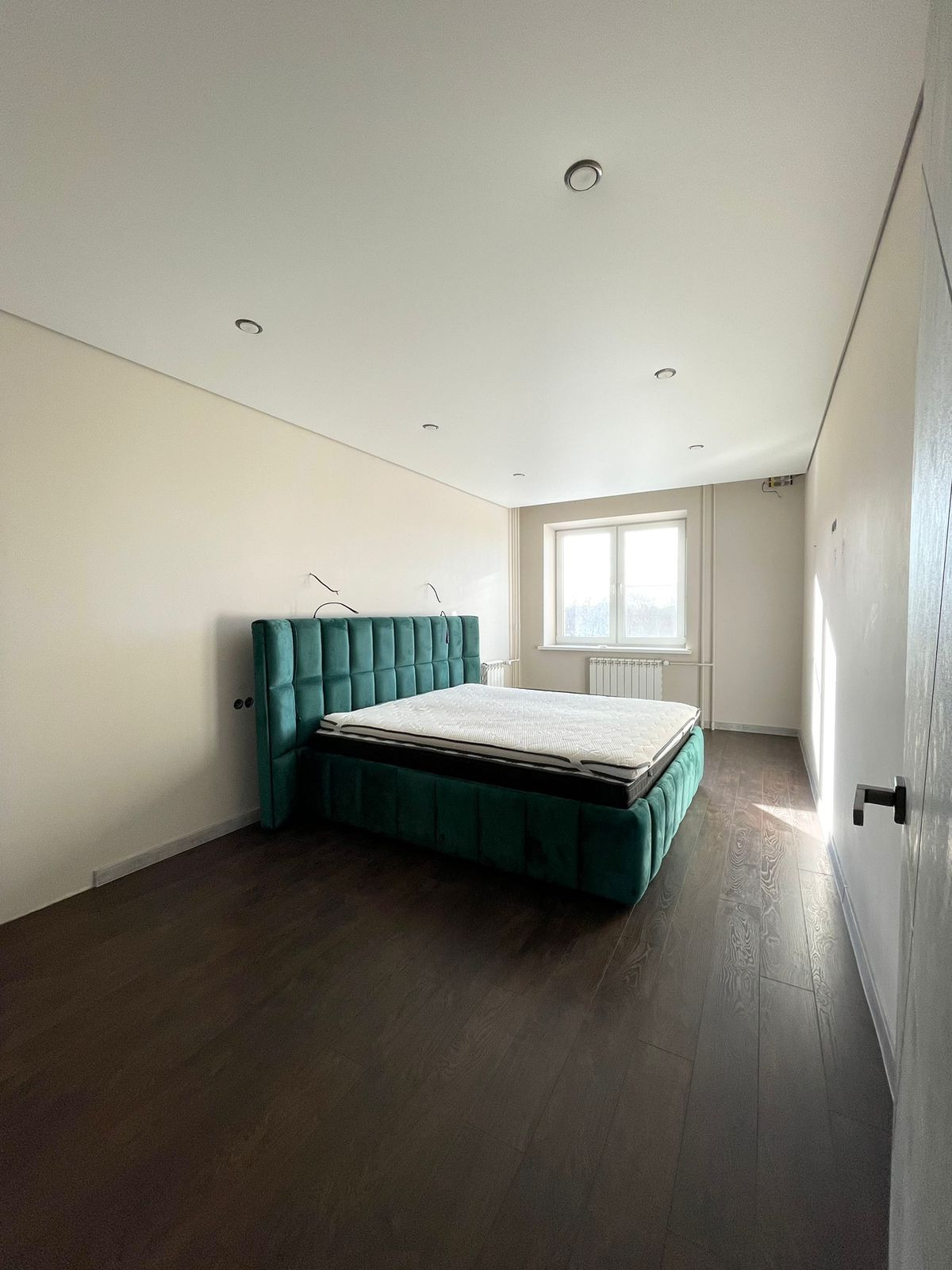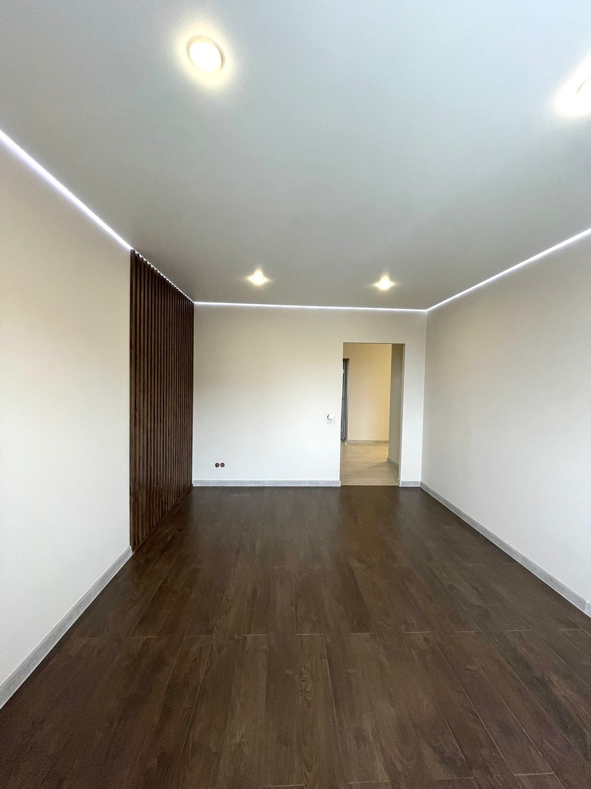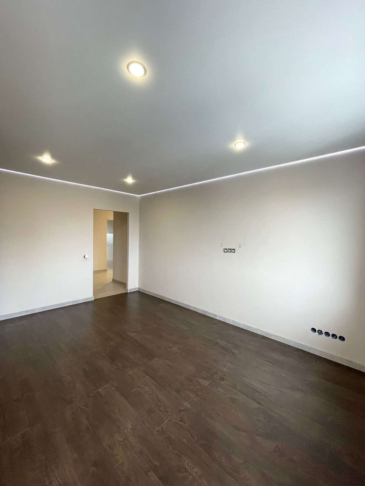 -В комнатах сделаны натяжные парящие потолки с RGB подсветкой которые могут менять цвет с пульта. Пол в комнатах- немецкий ламинат 33 класса.